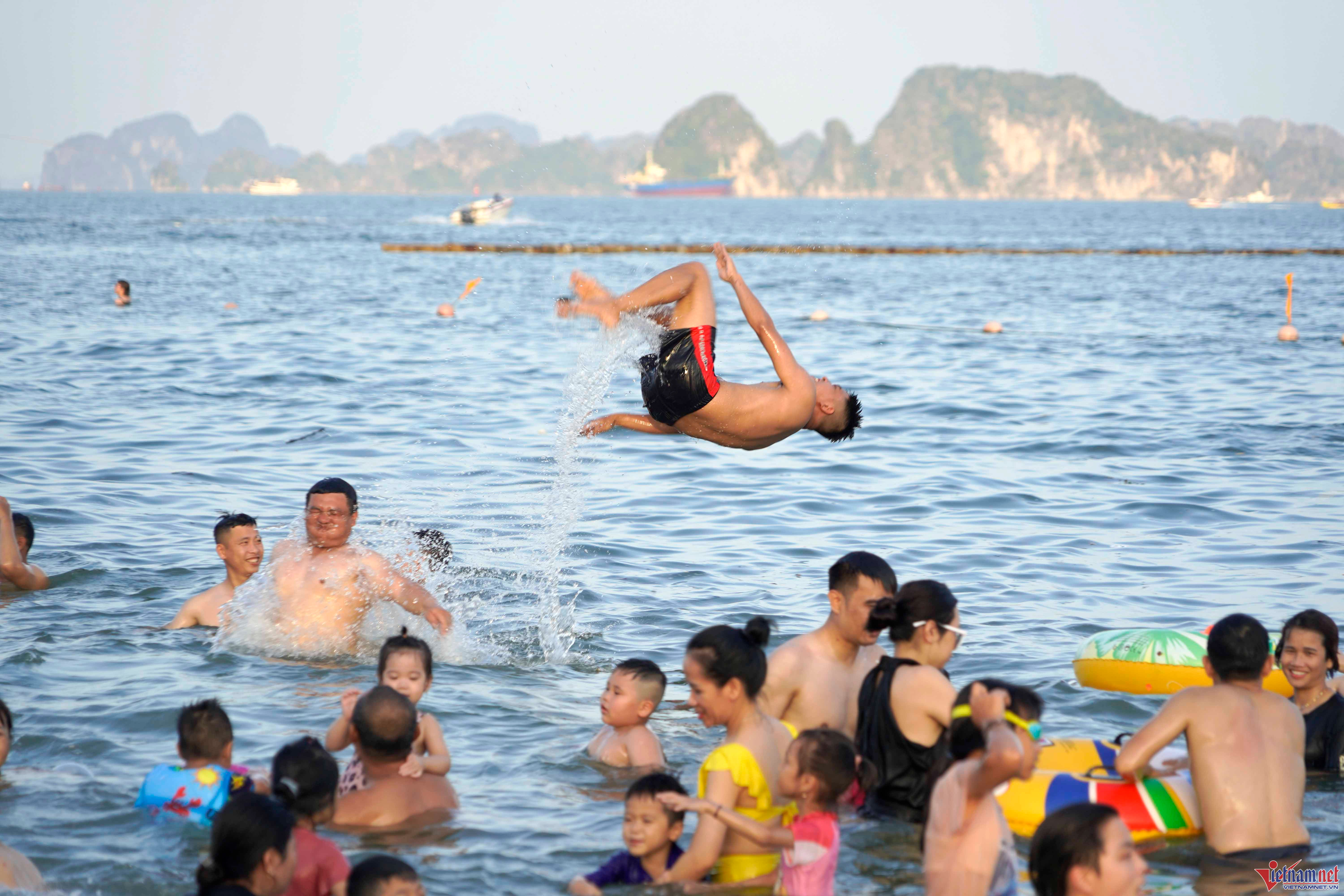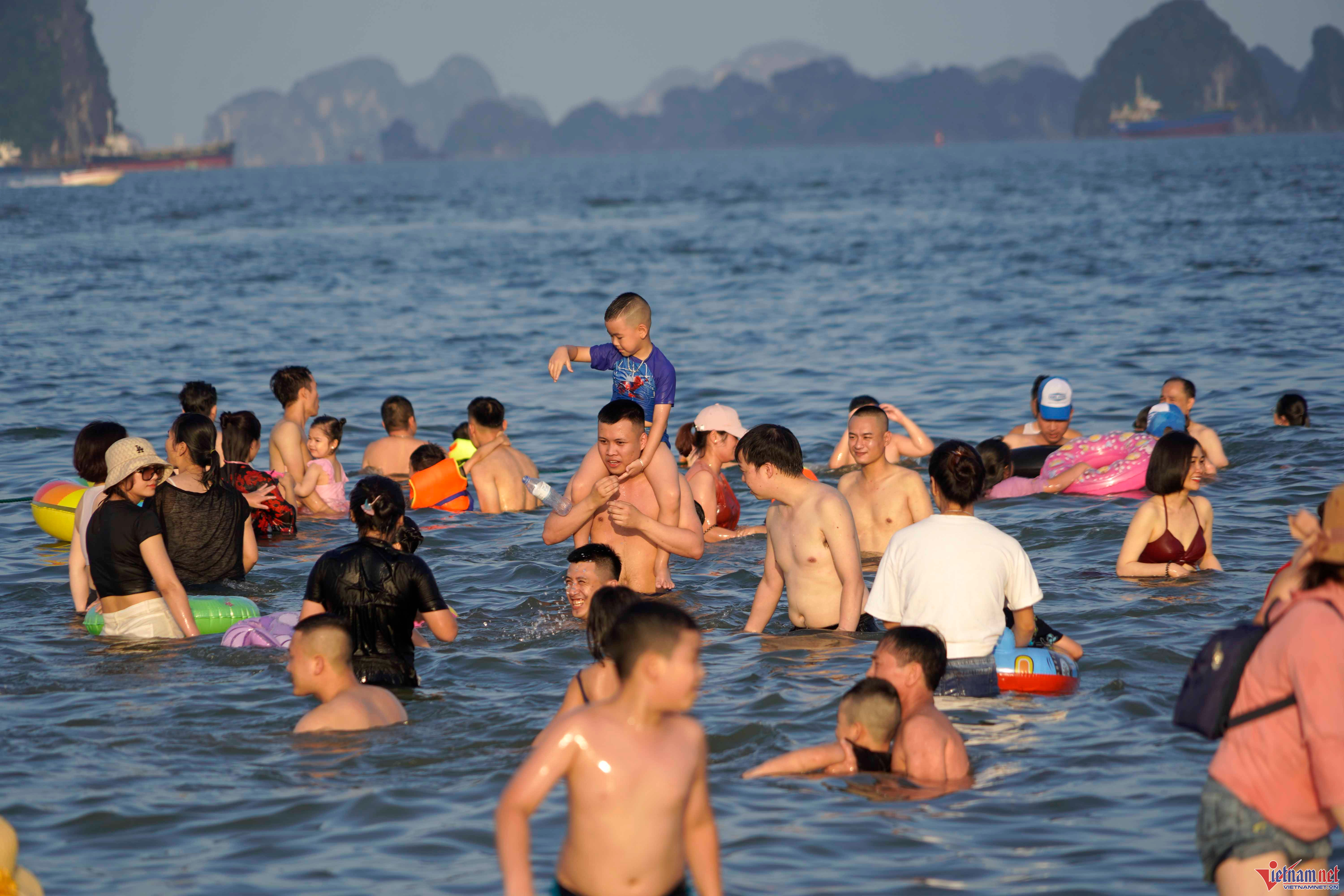 Những ngày thời tiết oi bức, nắng gắt, dòng người đổ xuống biển Hạ Long để tắm giải nhiệt có xu hướng tăng. Hôm nay, đúng ngày Tết Đoan Ngọ, với quan niệm tắm biển để 'rũ đi sâu bọ', xua đi vận đen đủi, đón may mắn, lượng người xuống biển tắm mát ngày càng đông.