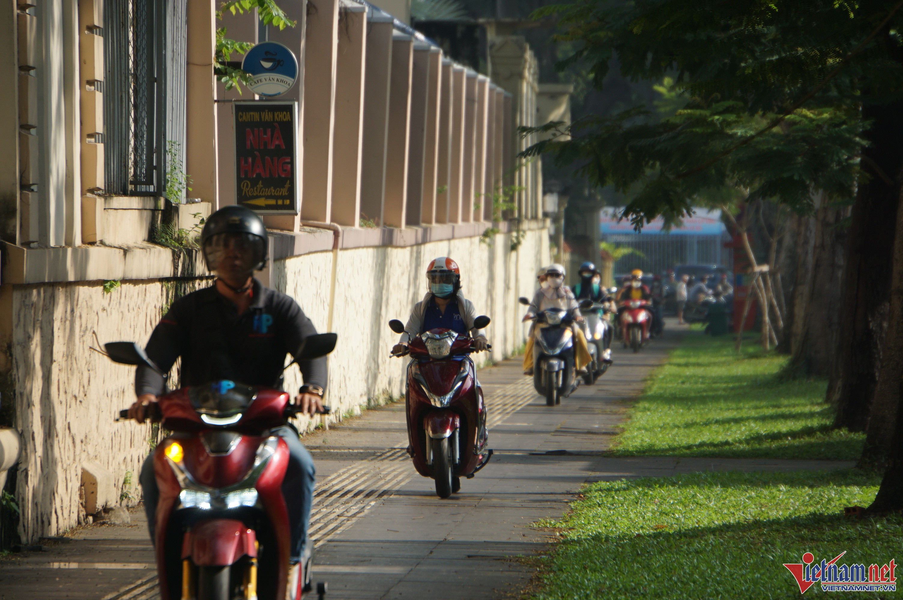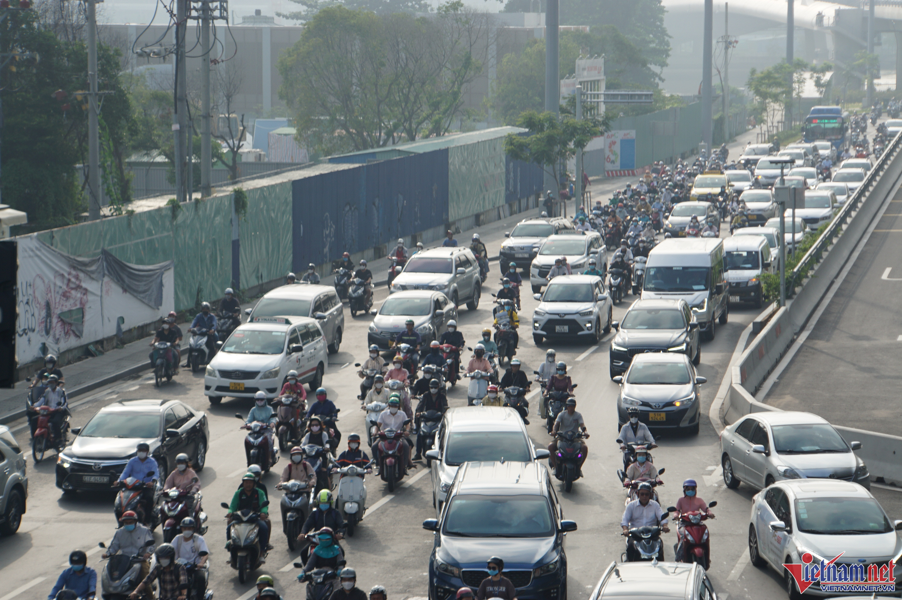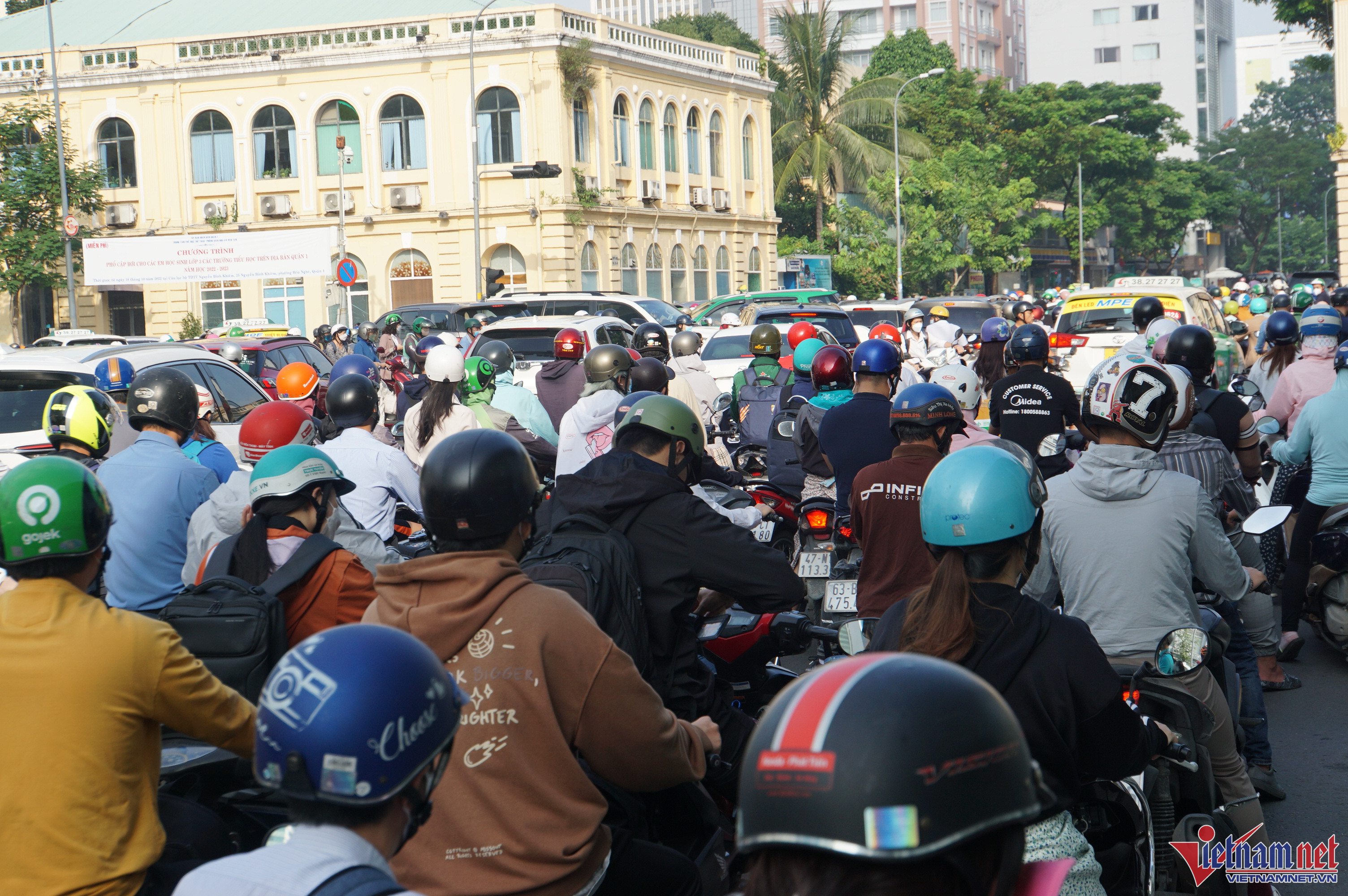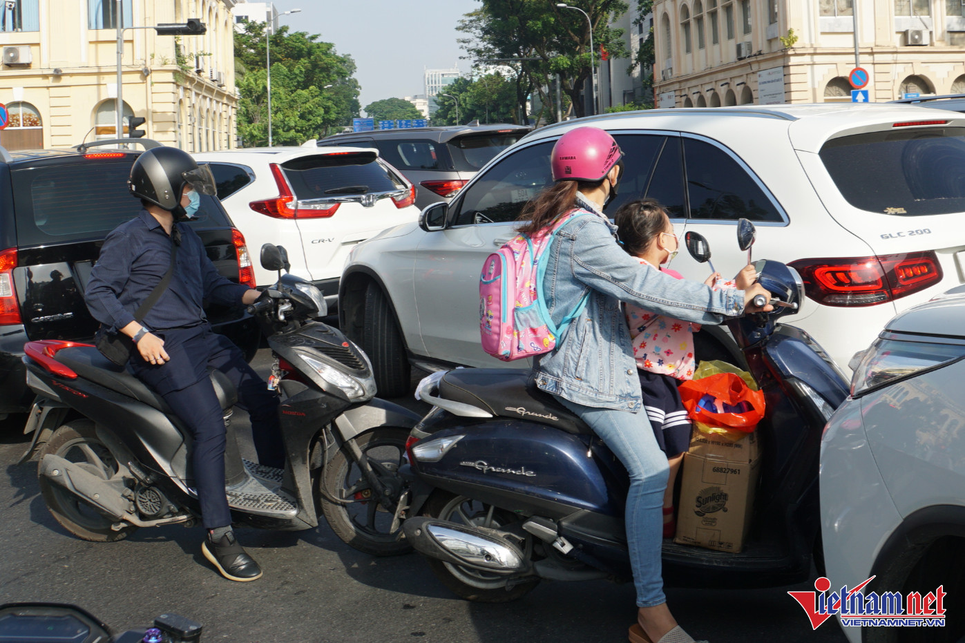 Khung cảnh xe máy, ô tô tranh nhau qua ngã tư khiến tình hình giao thông thêm rối loạn, ùn ứ kéo dài. Kẹt xe khiến nhiều người phải rời xe buýt, taxi, xe ôm để đi bộ đến trường học, nơi làm việc.