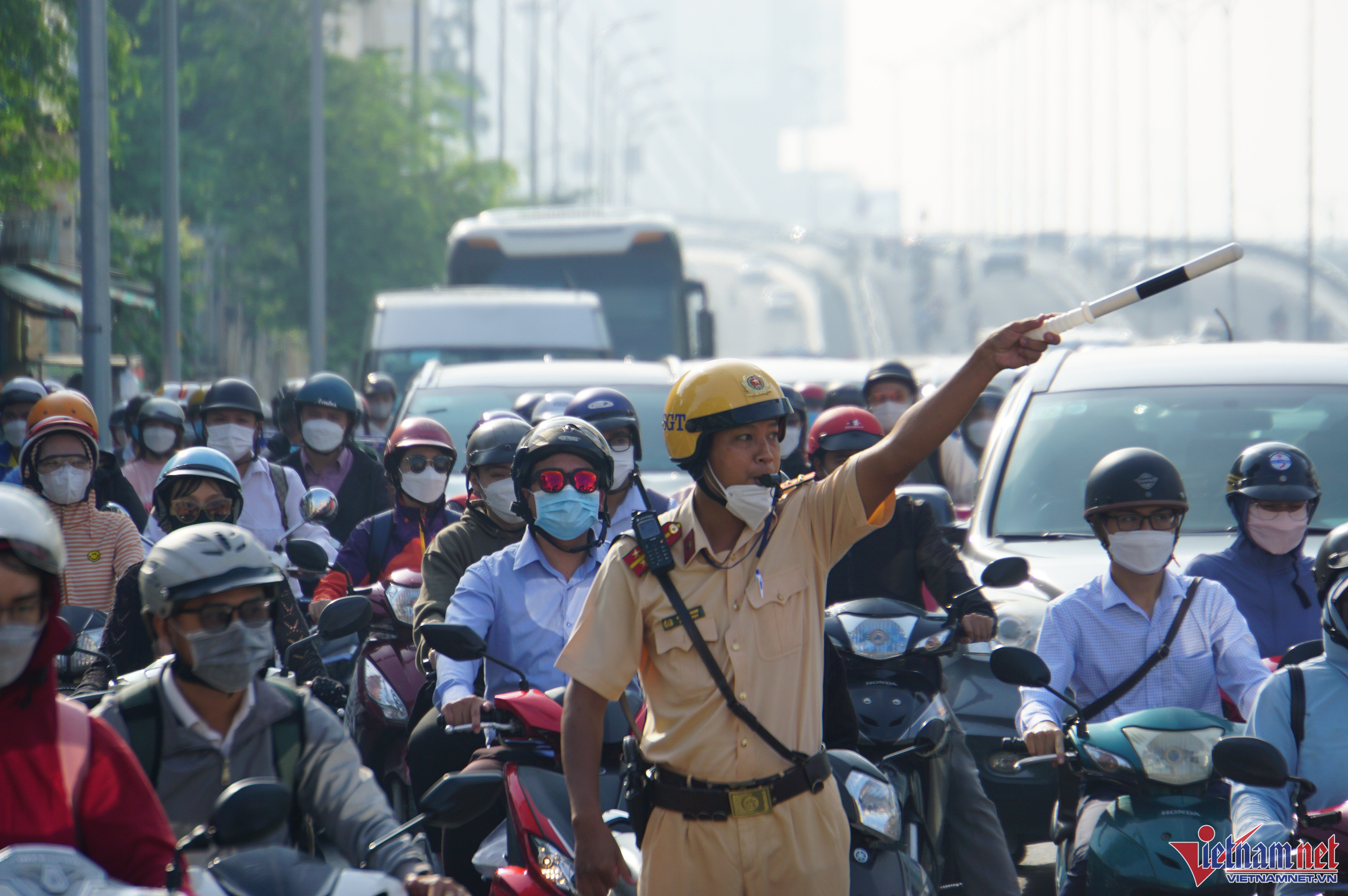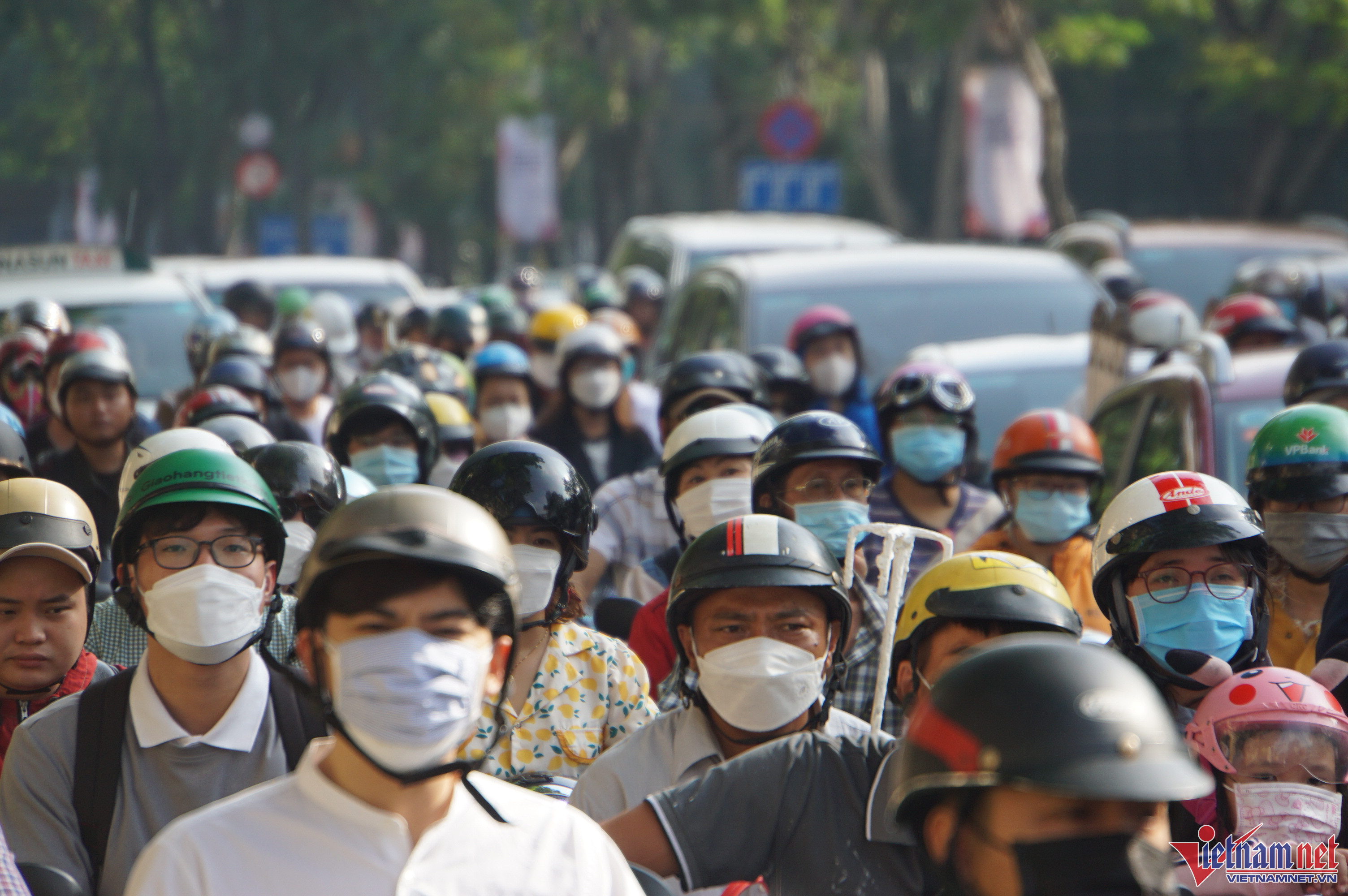 Người dân mắc kẹt trên đường trung tâm TP.HCM để đi làm, đến trường học