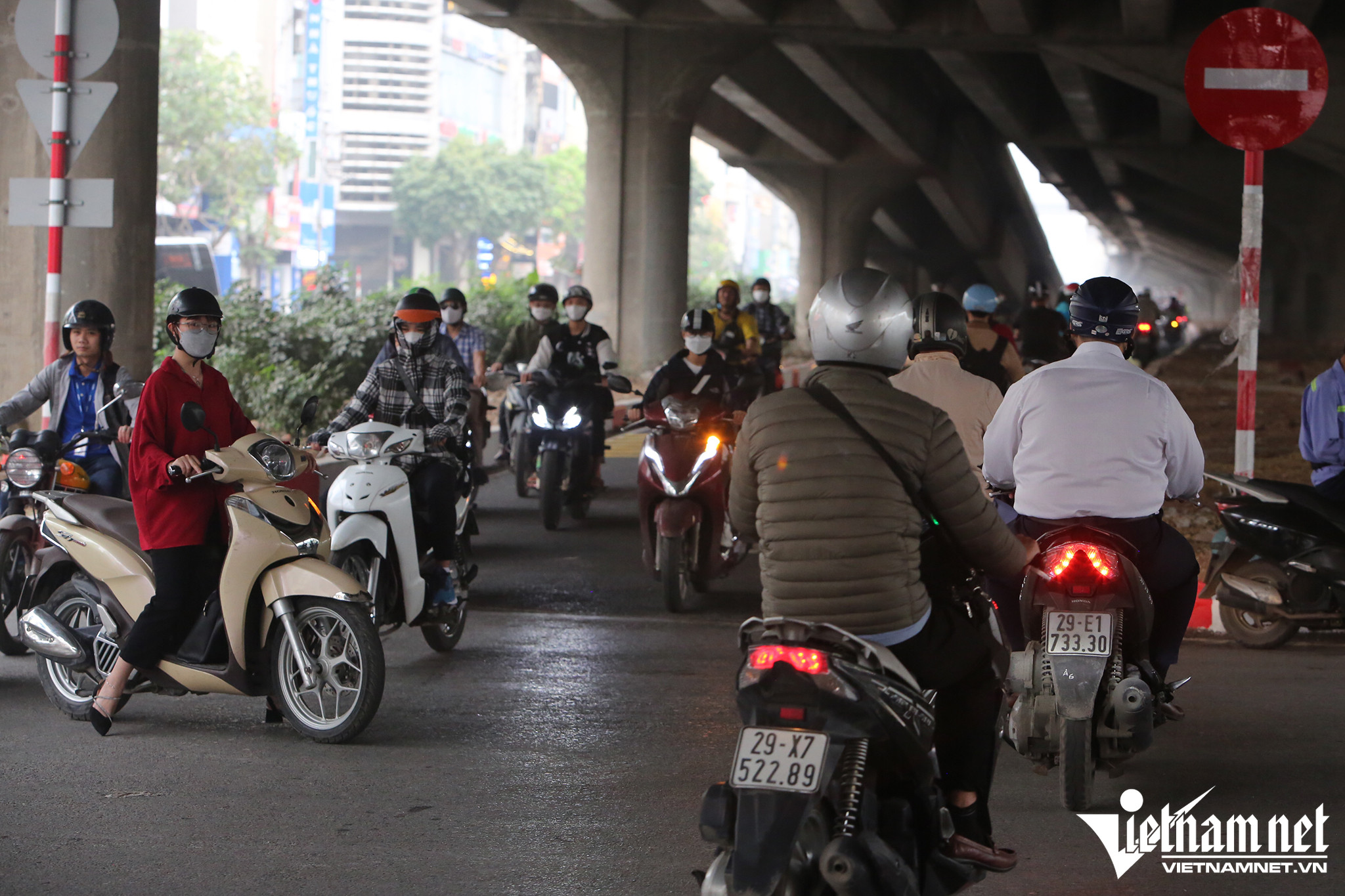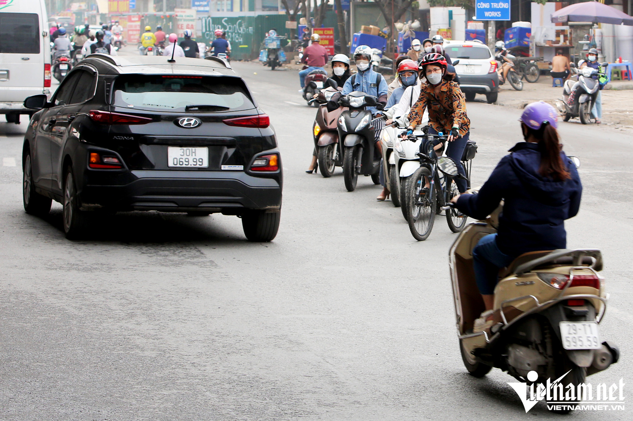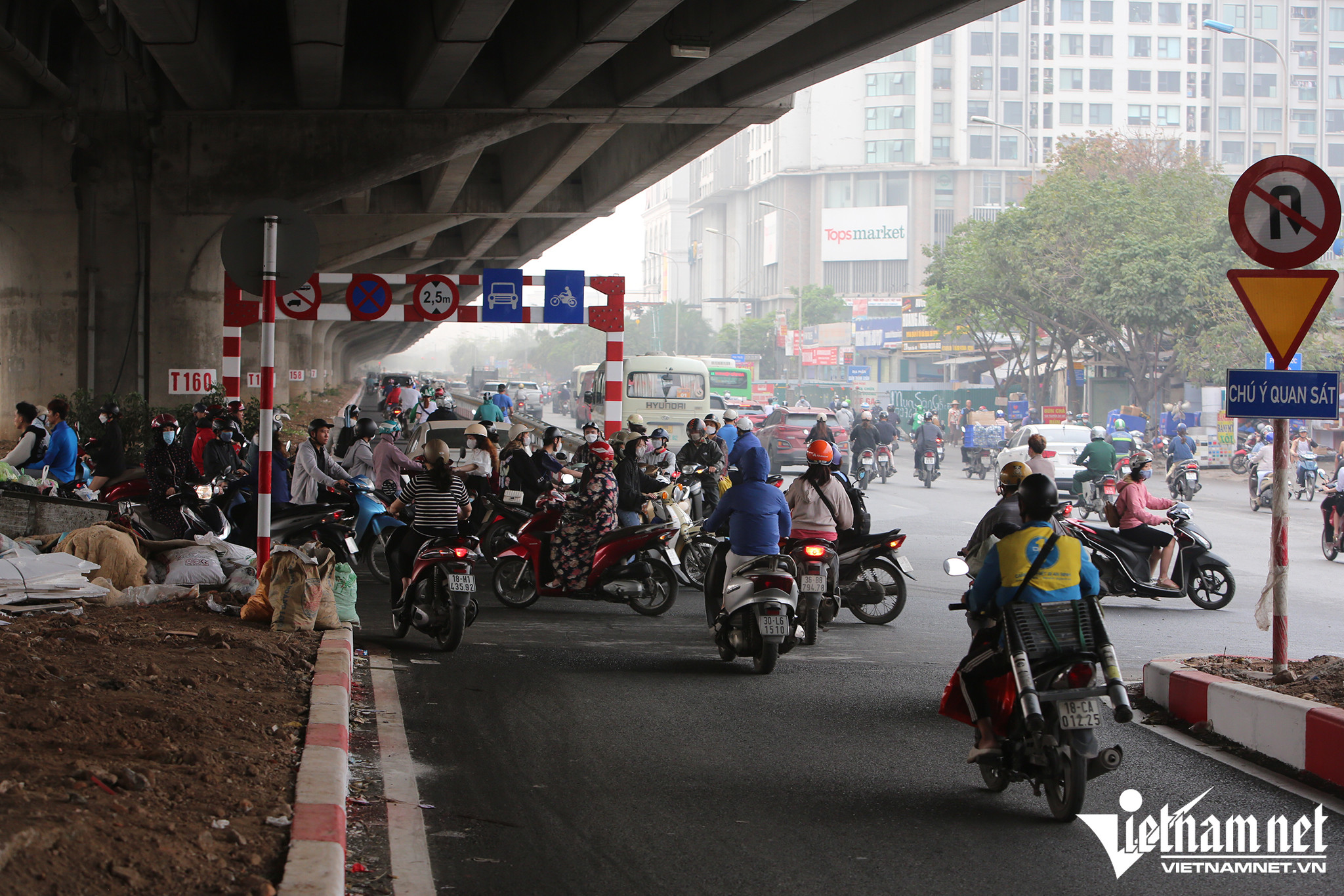 Ghi nhận của PV VietNamNet vào sáng 4/4, một lượng lớn xe máy đi ngược chiều ngay từ nút giao đường Nguyễn Xiển – Xa La vào làn đường mở rộng. Các xe này đi ngược chiều gần 1,7km đến cuối phần mở rộng tại nút giao Nguyễn Xiển – Nguyễn Trãi.