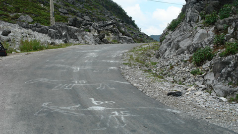 nghĩnh, không có sơn xịt, sơn mà… được thay thế bằng… vôi trắng, chì than…