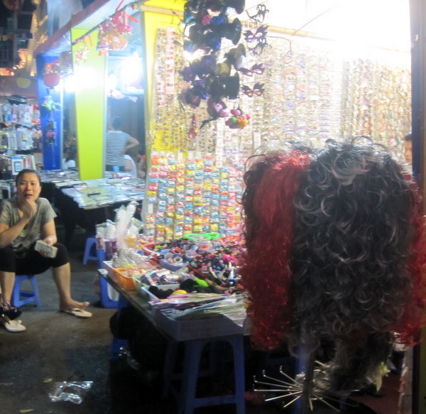 Chợ đêm trung thu phố cổ càng gần trung thu càng hút khách. Một trong những nét ngộ nghĩnh, sôi động nhất tại đây là hình ảnh các em nhỏ, bạn trẻ tha hồ biến hóa với muôn vàn kiểu tóc giả, mũ, mặt nạ…