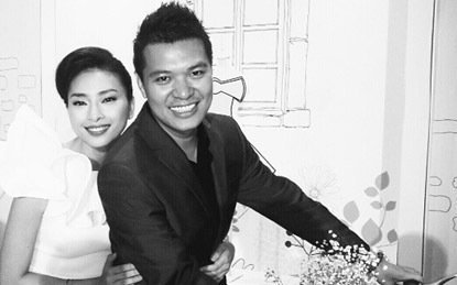 | Ngô Thanh Vân khoe ảnh mặc váy cô dâu với người đàn ông lạ (Ảnh: Afamily) |