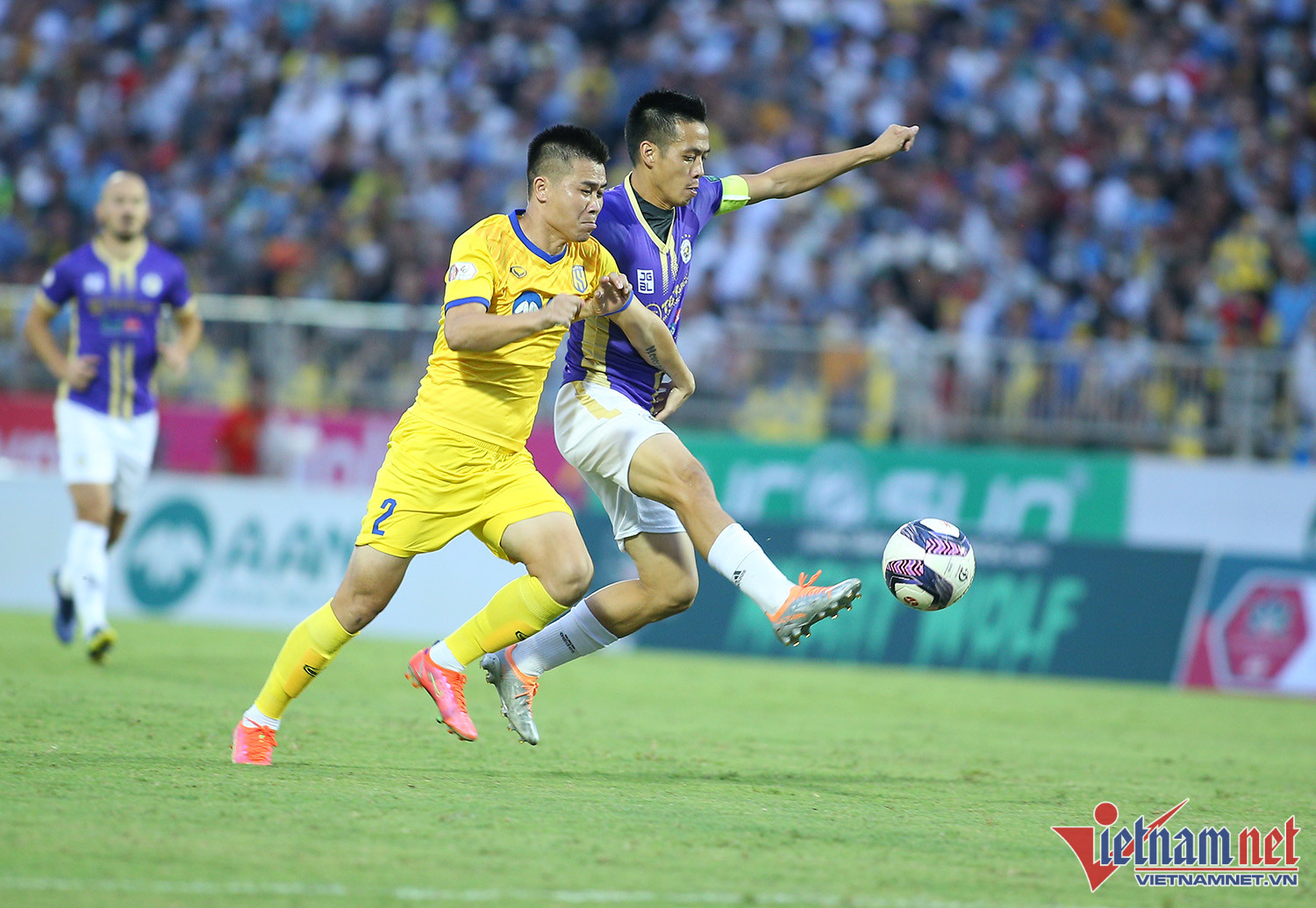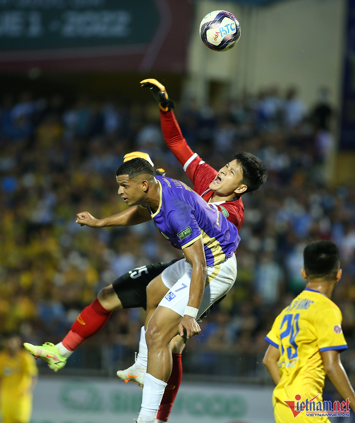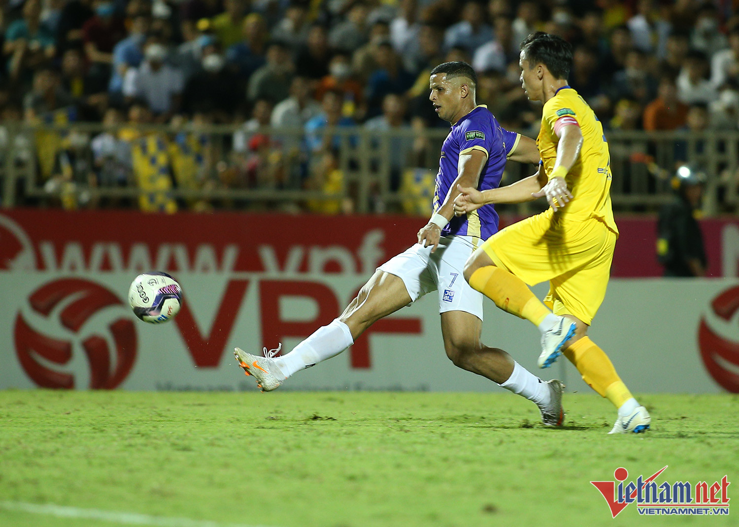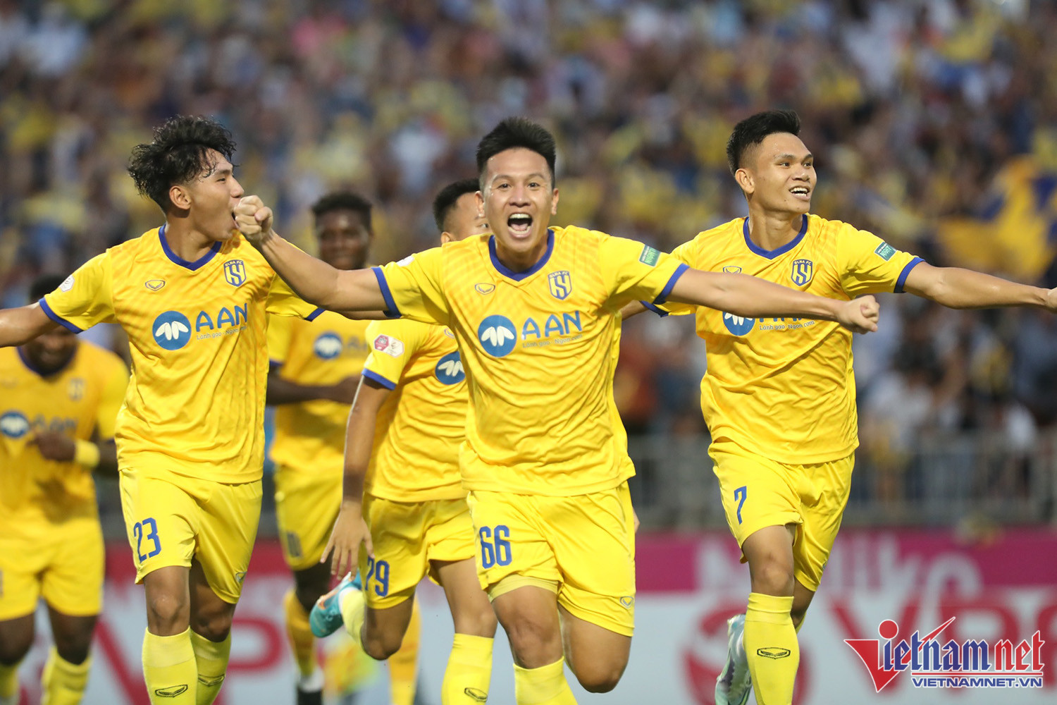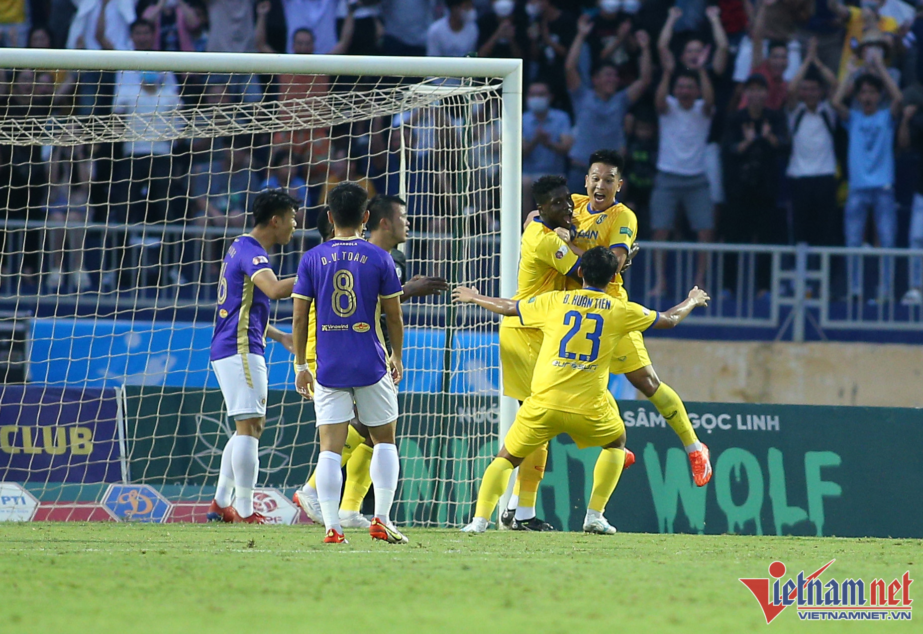 Dù không được đánh giá cao bằng Hà Nội nhưng lợi thế sân nhà giúp SLNA có thể trận tốt ngay sau tiếng còi khai cuộc của trọng tài. Đình Hoàng mở tỷ số ở phút thứ 6, giúp SLNA có sự khởi đầu rất thuận lợiNiềm vui của Đình Hoàng và các đồng đội khi chọc thủng lưới đội bóng Thủ đôVăn Quyết cùng các cầu thủ Hà Nội chơi đầy nỗ lựcĐây là trận đầu tiên từ mùa giải Hà Nội sử dụng 3 ngoại binh trên sânNhưng Văn Quyết vẫn là cầu thủ chơi nổi bật nhất bên phía đội kháchTân binh Lucao gỡ hòa 1-1 cho Hà Nội ở hiệp 2Tân binh người Brazil có màn ăn mừng đầy ngẫu hứngSau 2 trận ra mắt, Lucao đều ghi bàn cho Hà NộiBàn thắng của ngoại binh Lucao mang về 1 điểm quý giá cho Hà NộiHLV Huy Hoàng muốn thắng, nhưng SLNA chỉ có thể giành được 1 điểm trên sân nhàSLNA không thể buộc Hà Nội trắng tay rời sân VinhNỗi buồn của các cầu thủ chủ nhàSau 5 mùa giải toàn thua, SLNA có điểm khi tiếp Hà Nội, nhưng vẫn không thể nở nụ cười. Trong khi đó cả V-Legue cũng kém vui khi Hà Nội có 1 điểm và tiếp tục dẫn đầu BXH.