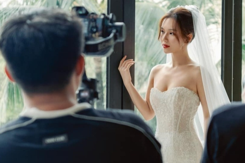 Bạn trai của nữ diễn viên lịch lãm, bảnh bao trong tà áo dài truyền thống màu xanh lam. Anh cùng đoàn nhà trai chuẩn bị sính lễ chu đáo đến nhà gái. "Bạn trai tôi thuộc tuýp người sống vui vẻ, nhiệt tình, tháo vát. Anh ấy là người đàn ông của gia đình. Cả hai yêu nhau và yêu cả những điều không hoàn hảo ở nhau. Nhược điểm của mỗi người đều không phải là điều to tát trong mắt đối phương", cô nói.