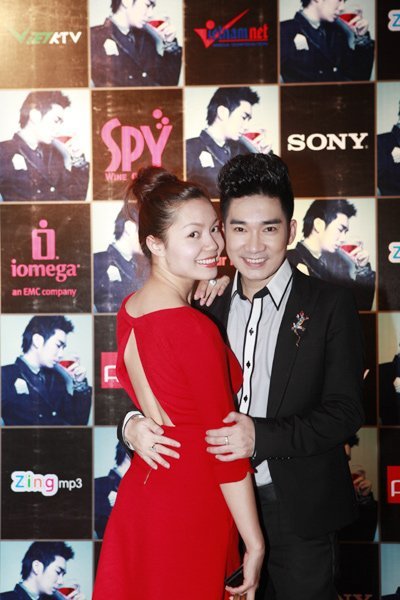 | Từ TP.HCM ra Hà Nội, xuống sân bay là Ngọc Anh đến luôn chỗ họp báo ca sĩ Quang Hà. Cô không ngại ngần ôm chặt Quang Hà tình tứ chụp ảnh tạo dáng. |