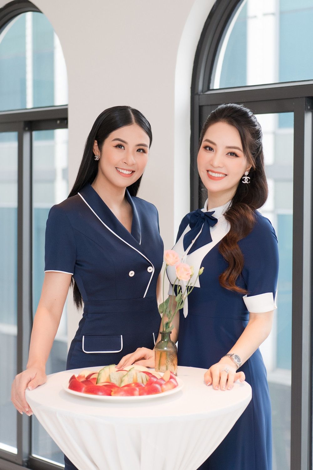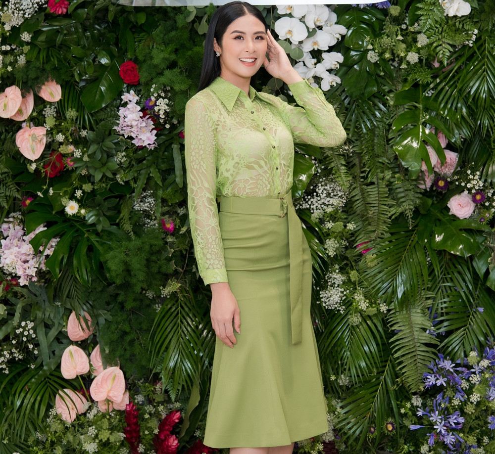 Tại một sự kiện thời trang ngày 6/5 tại Hà Nội, Hoa hậu Hà Kiều Anh, Ngọc Hân, Á hậu Tú Anh, vợ chồng nhạc sĩ Dương Cầm, MC-BTV Thụy Vân xuất hiện với tư cách khách mời và đã chọn những set đồ trẻ trung, tiện dụng nhằm gợi ý cho chị em công sở.Tại sự kiện, các Hoa hậu, Á hậu đã diện những thiết kế công sở trẻ trung. Các thiết kế đem đến cho các người đẹp vẻ đẹp sang trọng, thanh lịch mà vô cùng ngọt ngào, nữ tính. MC-BTV Thụy Vân gợi ý bộ đầm màu xanh bạc hà vô cùng tươi mát cho những ngày hè rực rỡ. Là MC VTV, Thụy Vân không thể mặc nửa kín nửa hở. Tuy nhiên, nữ MC vẫn có thể chọn trang phục không hở nhưng vẫn duyên dáng, thanh lịch, tôn lên nét nữ tính của người phụ nữ.Thụy Vân cũng gợi ý mẫu jumpsuit màu cam rực rỡ nổi bật vừa trẻ trung vừa năng động cho mọi người.Hoa hậu Ngọc Hân đọ dáng "một chín một mười" với MC Thụy Vân trong mẫu đầm công sở duyên dáng.Ngọc Hân diện mẫu jumpsuit họa tiết lạ vô cùng năng động.Á hậu Tú Anh thanh lịch trong bộ đồ màu hồng nhạt, họa tiết kẻ.Một mẫu trang phục màu xanh bắt mắt, xuyên thấu tạo sự gợi cảm nhưng không phản cảm mà Ngọc Hân gợi ý.Hoa hậu Hà Kiều Anh vô cùng thanh lịch với bộ đầm trắng.