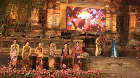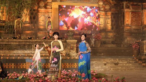 Hình ảnh hoa sen được khai thác và tôn vinh đậm nét qua những tà áo dài thướt tha qua các bộ sưu tập của NTK người Huế Viết Bảo - người đã góp mặt qua 5 kỳ Festival liên tiếp, NTK Đức Hải đế từ Hà Nội, NTK Minh Hạnh và cả những mẫu thiết kế của hoa hậu Ngọc Hân.