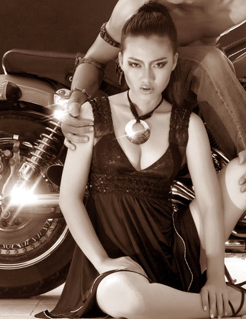 Trong mô tuýp quen thuộc người đẹp gợi cảm bên mô tô phân khối lớn hầm hố, Ngọc Lan hóa thân thành một kiều nữ lạnh lùng. Bên vài người mẫu nam thô ráp phụ diễn cùng phông nền góc cạnh, người đẹp nổi bật với làn da trắng muốt và những trang phục, tư thế rất sexy.