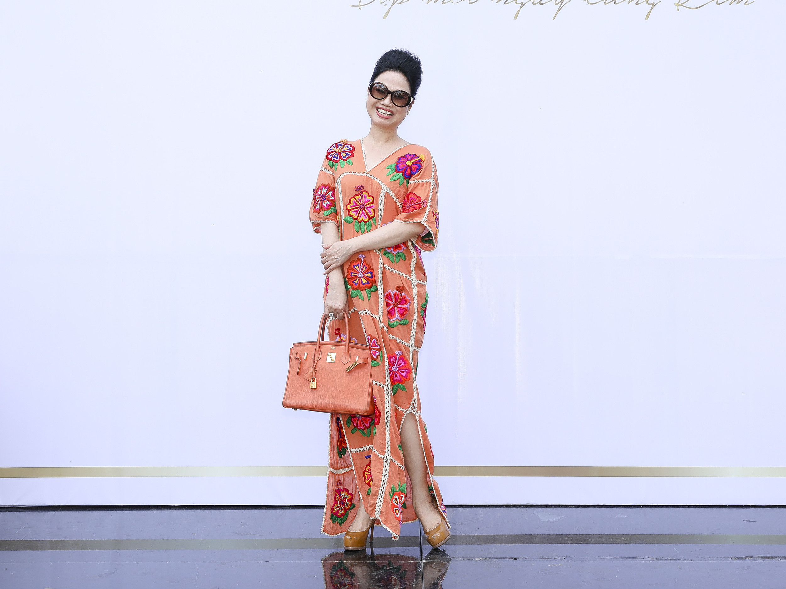 Nghệ sĩ Ngọc Sơn chưng diện áo sơ mi ren đen, áp gile kết hợp quần tây sọc caro cùng màu đi cùng giày da bóng loáng.Danh ca Thùy Trang mặc đầm hoa form rộng và túi hiệu cùng màu. Sao "Mưa bụi" thể hiện phong cách trẻ trung thay vì mặc áo dài dự sự kiện như thường lệ.Dàn nghệ sĩ vui vẻ, nô nức chụp ảnh cùng nhau. Hai danh ca Ngọc Sơn và Thùy Trang hồ hởi trò chuyện, hỏi han nhau.Lần hiếm hoi, nghệ sĩ Cát Phượng mặc sexy. Chị diện váy xẻ sâu vòng 1, khoe ngực đầy đặn.
