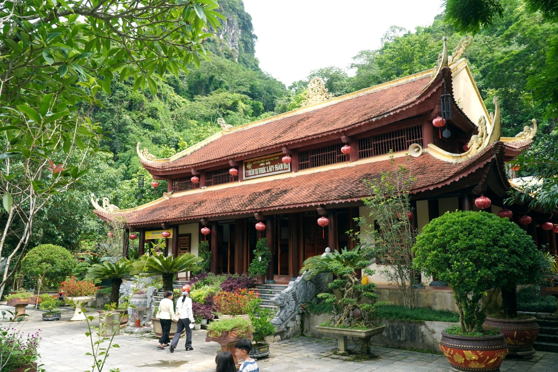 Vì chùa được xây dựng trên địa hình chân - sườn và vách núi nên từ xa nhìn lại, ai cũng có cảm giác như chùa nằm lọt trong lòng vách núi.