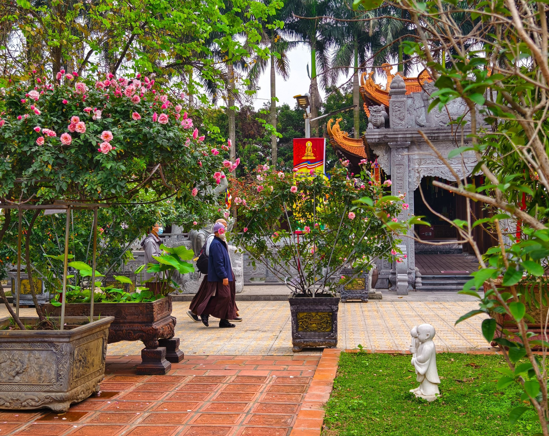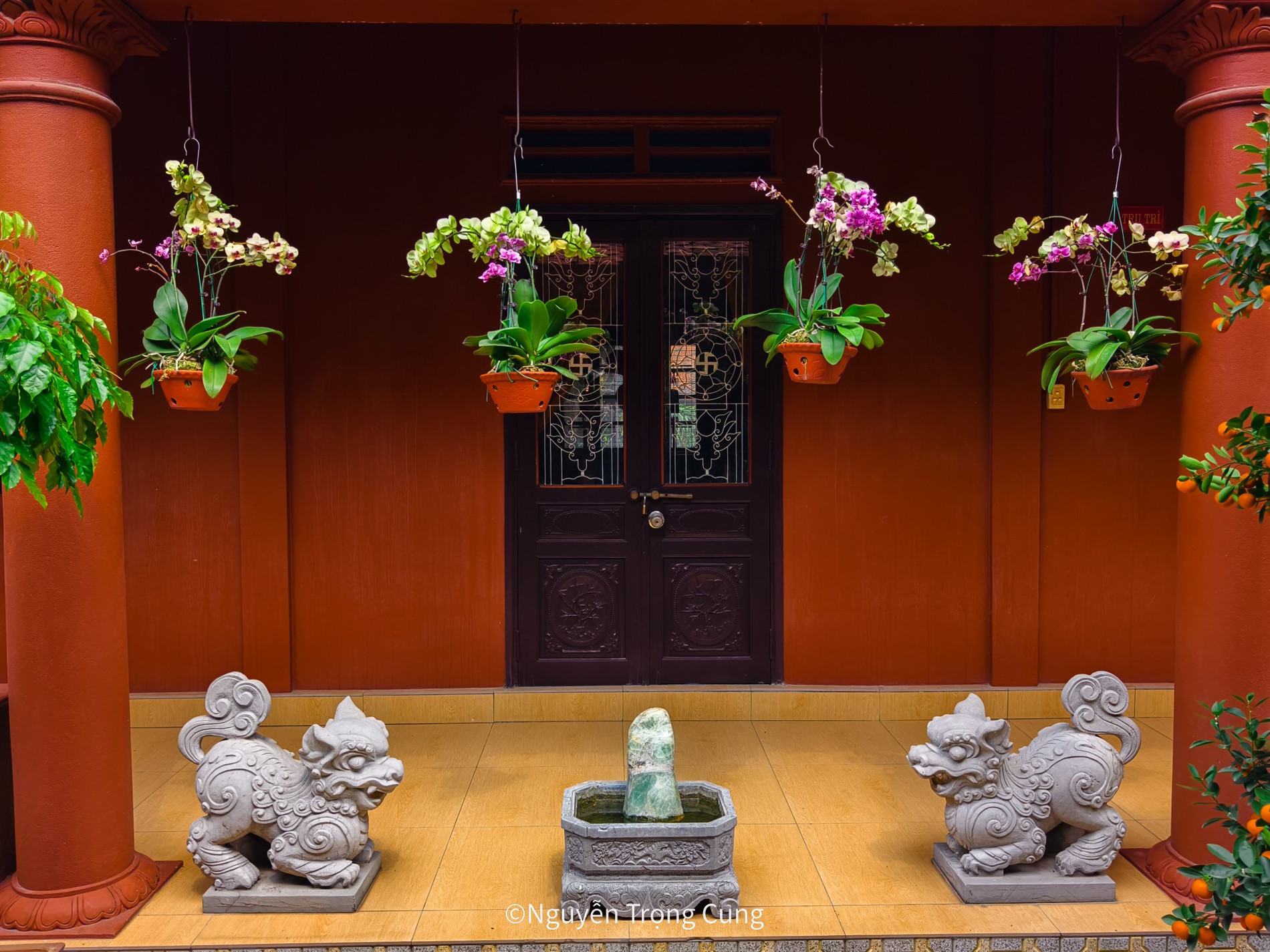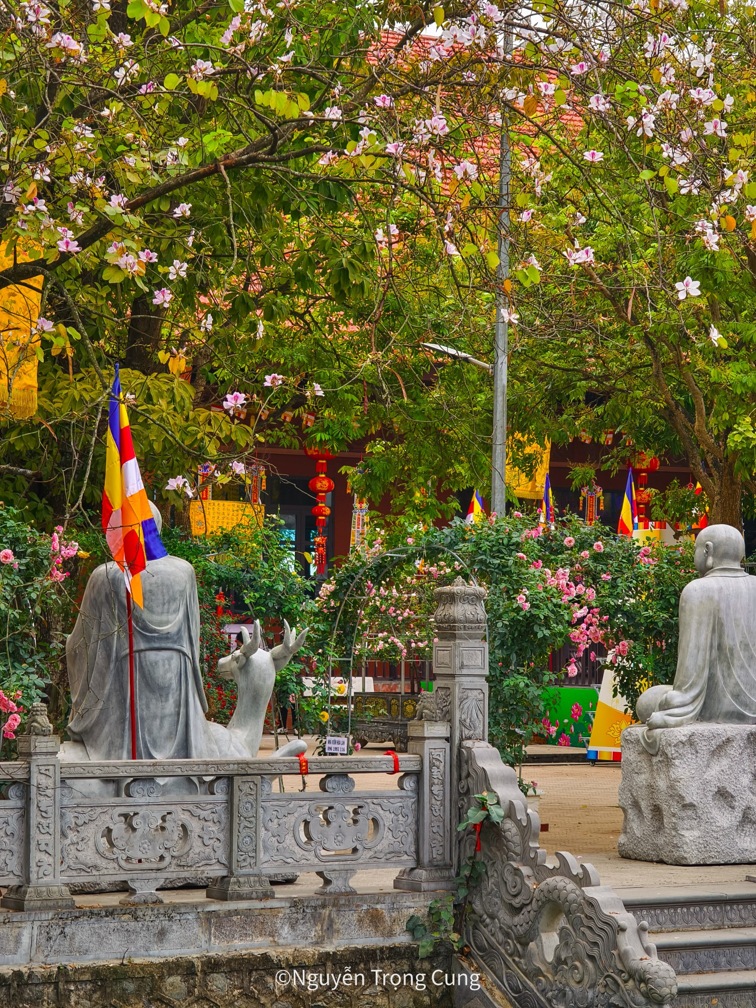 “Chùa mang nét đẹp cổ kính xen lẫn vẻ hiện đại, xung quanh bài trí nhiều loại hoa rực rỡ sắc màu”, anh Cung chia sẻ.