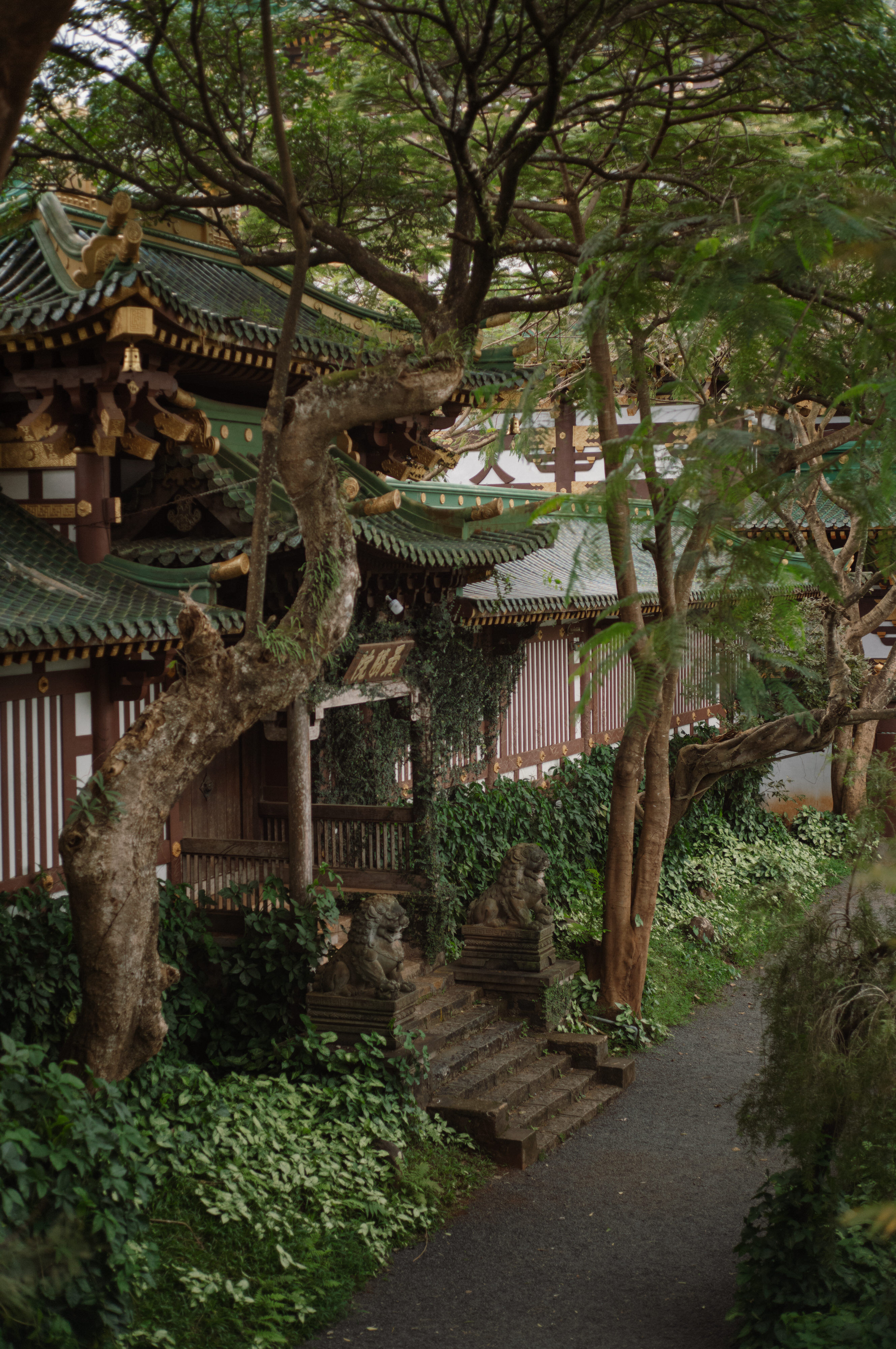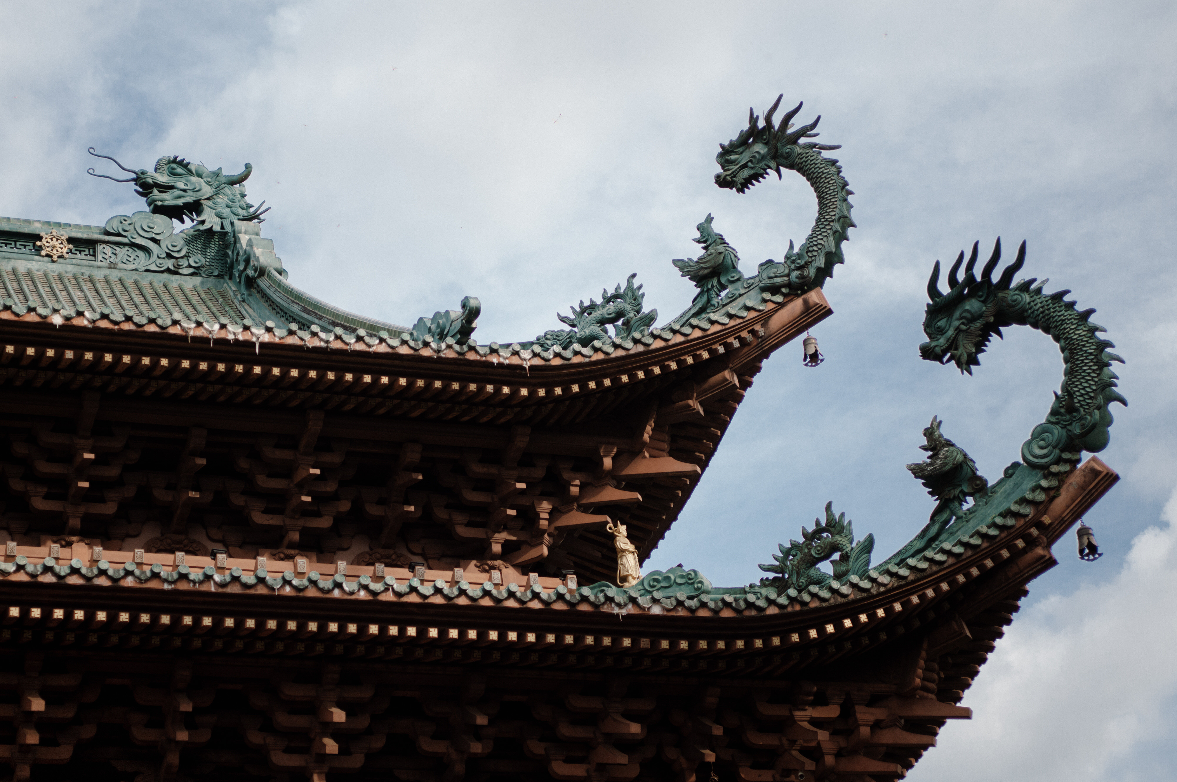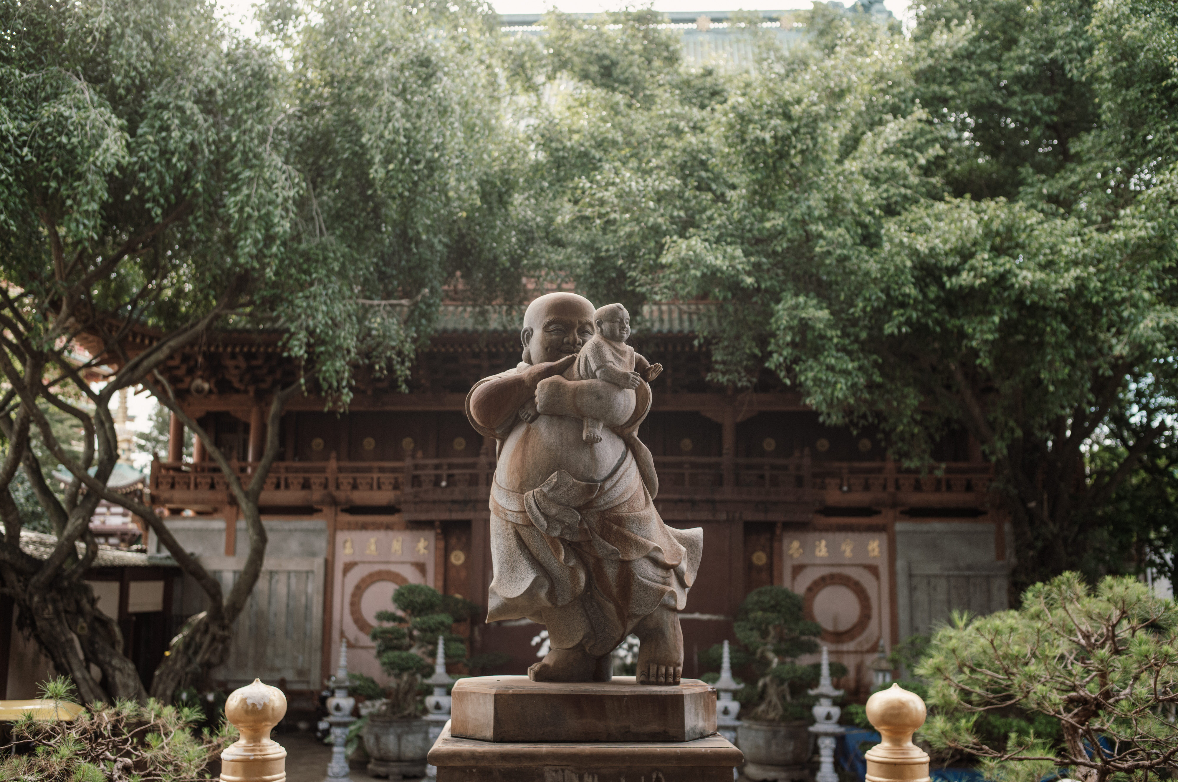 Khi bước vào chùa du khách sẽ thấy ngay tượng Phật bà Quan Âm được đặt ở chính giữa cửa ra vào và được trang trí cây xanh, cột đá, tượng kỳ lân một cách đối xứng.