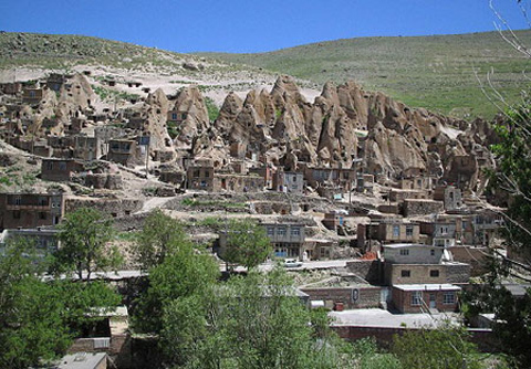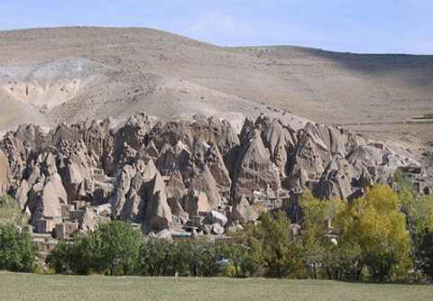 Ngôi làng Kandovan nằm ở phía tây nam, cách thành phố Tabriz khoảng 60 km, thuộc tỉnh Đông Azerbaijan của Iran. Nơi đây nổi tiếng với kiến trúc nhà độc đáo, là những nhà hang động được chạm khắc từ khối núi đá lửa khổng lồ.