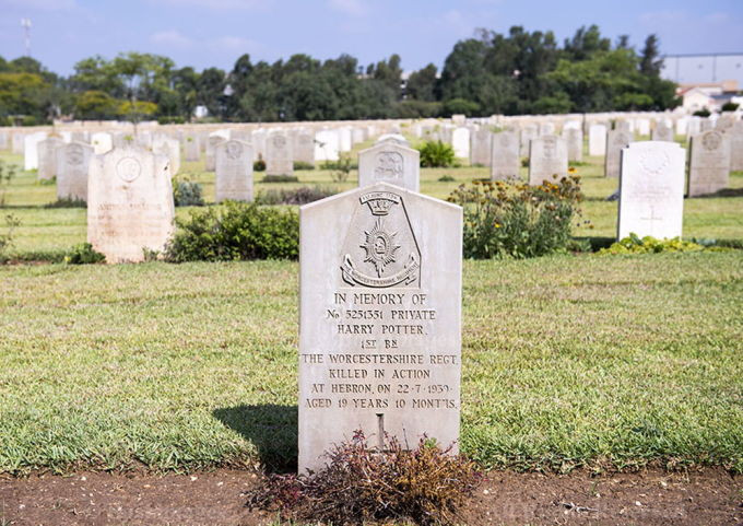 Ngôi mộ này thuộc về binh nhì Harry Potter, một người lính thuộc sư đoàn Vận tải Cơ giới của Trung đoàn Worcestershire số 1, người đã thiệt mạng trong Cuộc nổi dậy của người Ả Rập ở Palestine. Điều khiến hàng nghìn khách quốc tế ghé thăm nơi này hàng năm, theo ước tính từ các công ty du lịch địa phương, là nhờ ngôi mộ khắc tên Harry Potter, một nhân vật hư cấu vô cùng nổi tiếng trong bộ truyện cùng tên của nhà văn người Anh JK Rowling.
