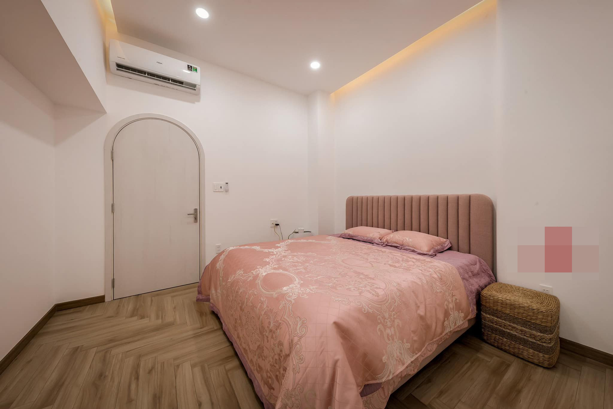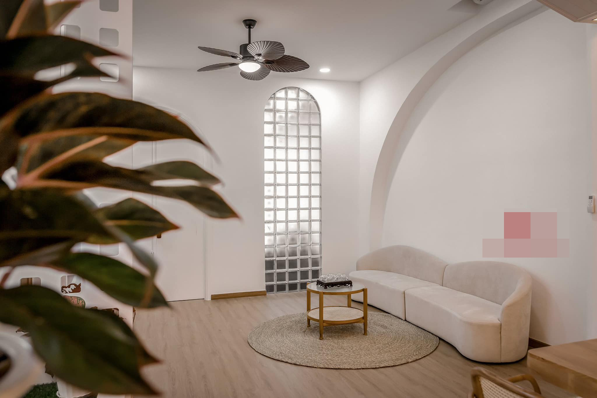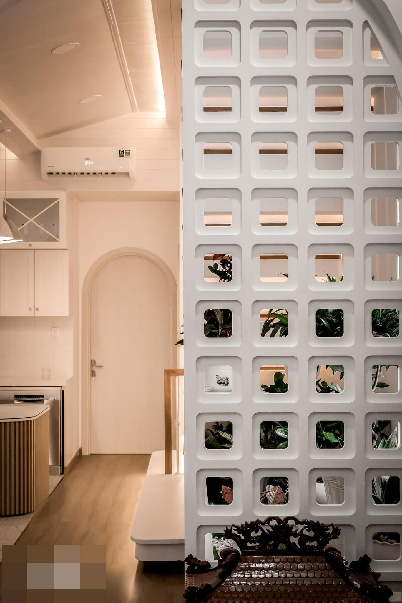 Căn nhà 100m2 ở Bình Dương được kiến trúc sư Đỗ Nguyễn Anh Quý sử dụng tông màu trắng kết hợp với màu gỗ để tạo nên sự tương phản hài hòa trong một không gian hiện đại và ấm áp.