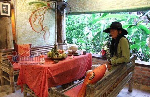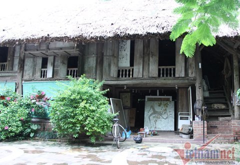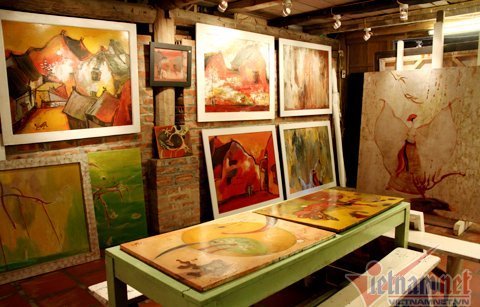 Tầng dưới căn nhà sàn Đào Anh Khánh dùng để vẽ tranh,