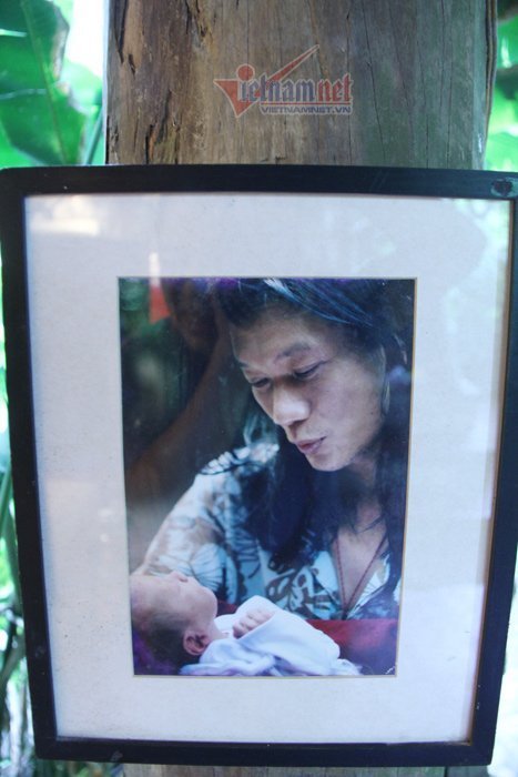 Bức ảnh Đào Anh Khánh bế cậu con trai khi mới chào đời được đóng khung treo ở một cái cây lớn trong nhà.
