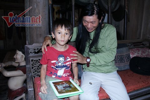 chơi với bố chỉ thích ôm máy tính bảng suốt ngày. Nhiều khi mải xem ti vi cậu chàng còn đứng tè hồn nhiên từ trên gác xuống khiến "nhà tôi có những mùi rất đặc trưng", họa sĩ họ Đào tếu táo.