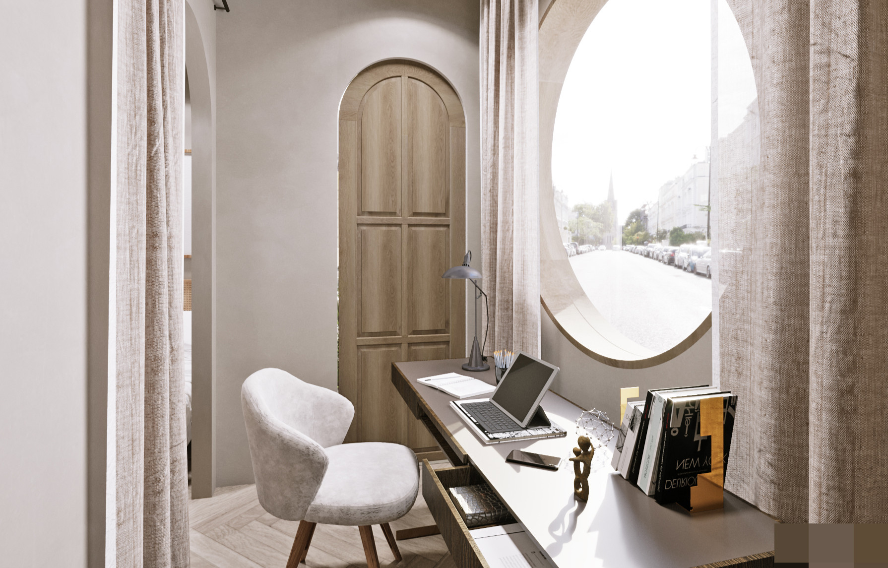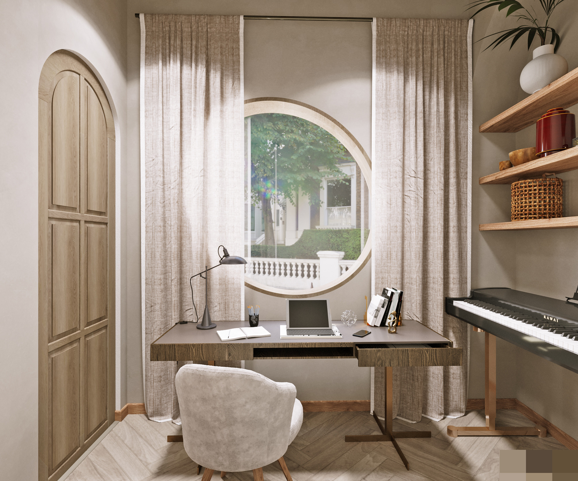 Chủ đầu tư thích các chi tiết vòm, cong như cửa, cửa sổ, các vách ngăn không gian,… Về các vấn đề ngăn chia không gian hay thông gió lấy sáng, đội thiết kế bố trí bám sát vào các yêu cầu công năng của khách hàng.