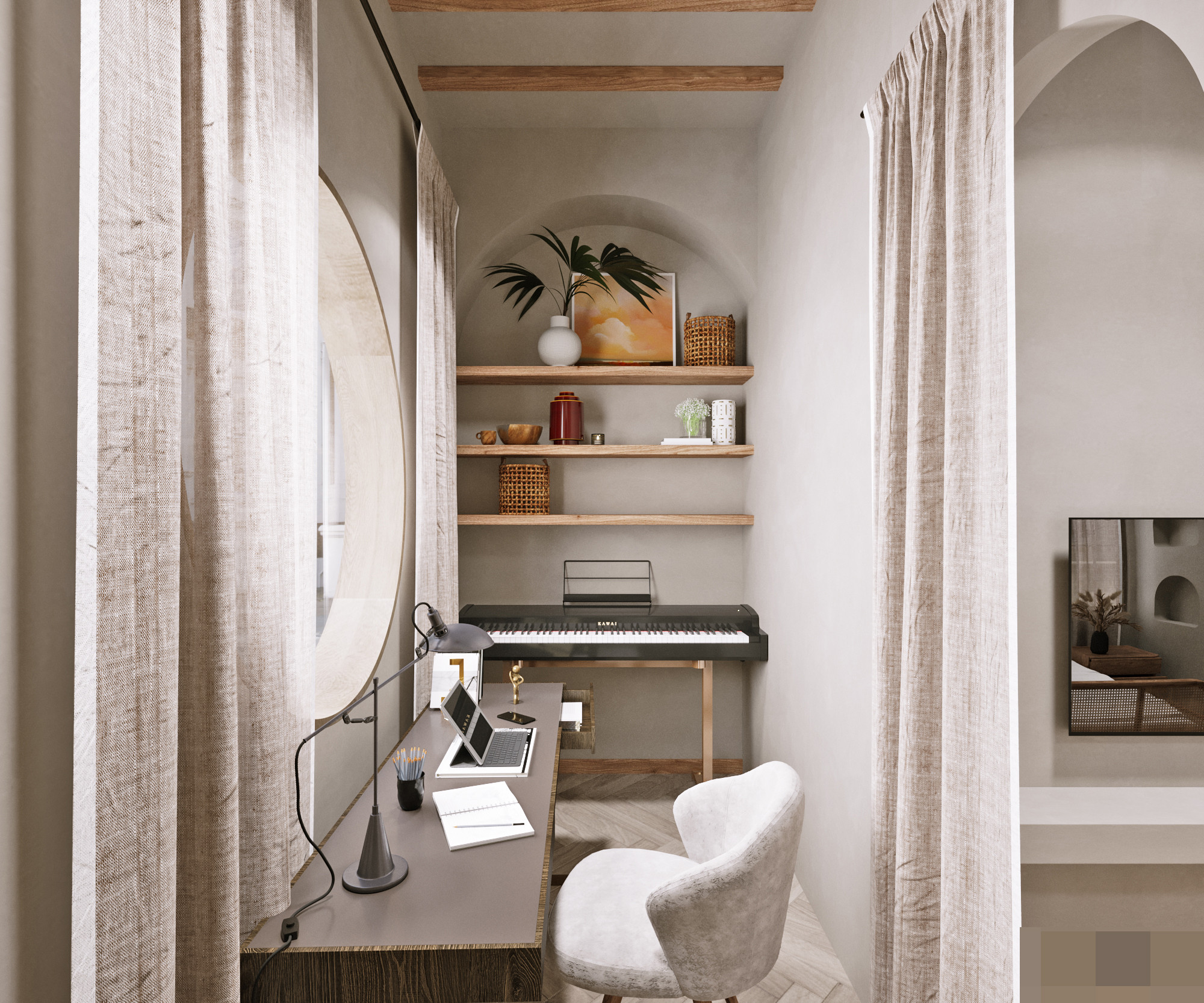 Góc bàn làm việc và giải trí cho gia chủ thăng hoa hơn trong công việc sáng tạo.