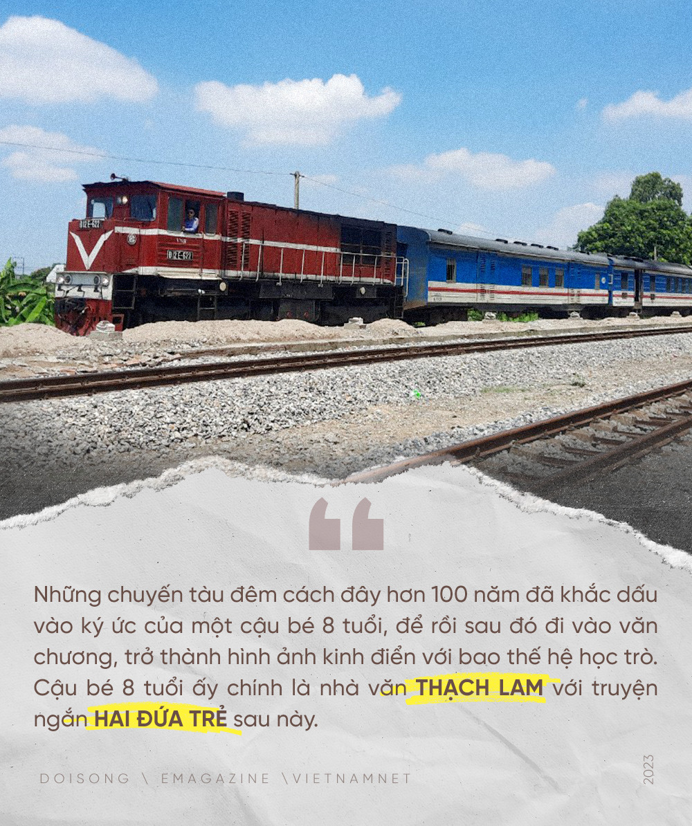 Cách đây hơn 100 năm, cũng chính tại nơi đây, trên đường ray này, những chuyến tàu đêm lầm lũi chạy qua mỗi ngày đã khắc dấu vào ký ức của một cậu bé 8 tuổi, để rồi sau đó đi vào văn chương, trở thành hình ảnh kinh điển với bao thế hệ học trò. Cậu bé 8 tuổi ấy chính là nhà văn Thạch Lam sau này. Những chuyến tàu đêm cách đây hơn 100 năm đã bước thẳng từ ký ức thực vào truyện ngắn Hai đứa trẻ nổi tiếng của ông.