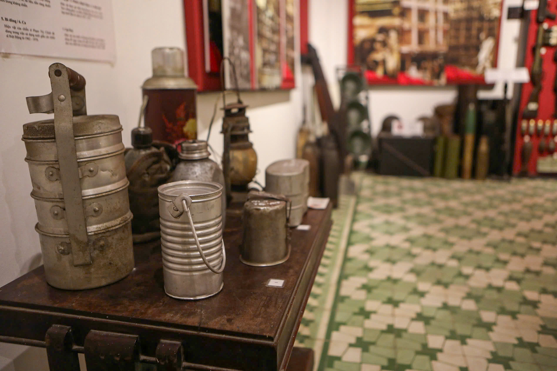 Nhiều vật dụng sinh hoạt như lon sữa, đồ đựng thức ăn, bình nước... được chiến sĩ biệt động tận dụng để cất thư mật, tiền vàng, thuốc men trong kháng chiến.