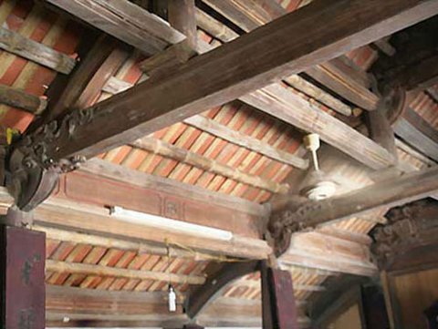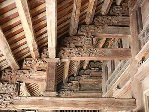 Hai xà chính của ngôi nhà được làm bằng gỗ táu với nhiều nét
