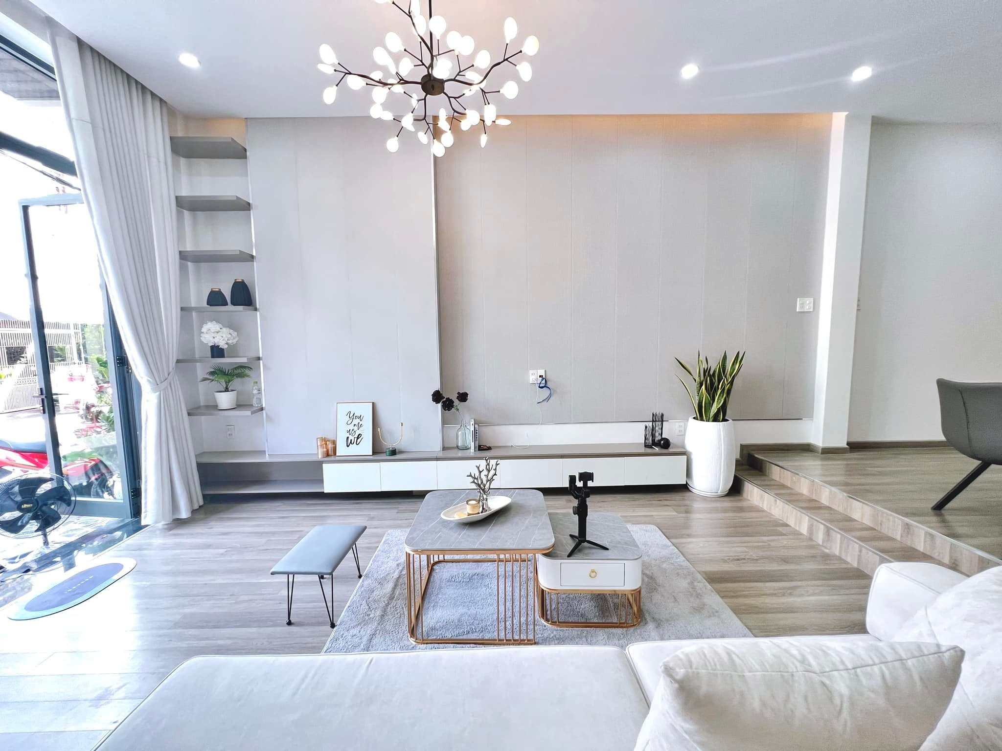 Tông màu sáng của ba gam màu: Xám, cafe sữa, trắng, sẽ làm cho ngôi nhà mát mắt khi sử dụng.