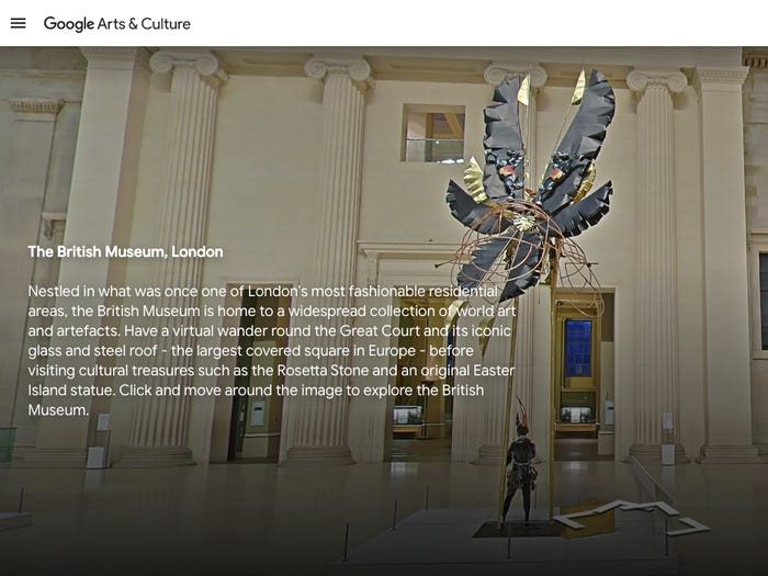 Google có 3.468 tour thăm quan bảo tàng ảo trên khắp thế giới, đi kèm với lịch sử và bối cảnh của từng tác phẩm nghệ thuật. Nếu đang ở nhà cả ngày, tại sao bạn không tận dụng thời gian này để mục sở thị những bảo tàng này trên Google? Chỉ cần truy cập vào https://artsandculture.google.com/search/streetview?project=streetviews và bấm vào bất kỳ địa điểm nào bạn muốn tới.