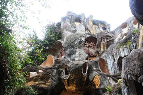 Được xây dựng từ năm 1990 trên khuôn viên rộng gần 1.900 m2, Ngôi nhà điên nổi tiếng vì kiến trúc độc đáo đến quái dị, với vẻ bề ngoài trông như những gốc cây, hang động giữa rừng già, hoặc một phần cơ thể của những con thú hoang dã.