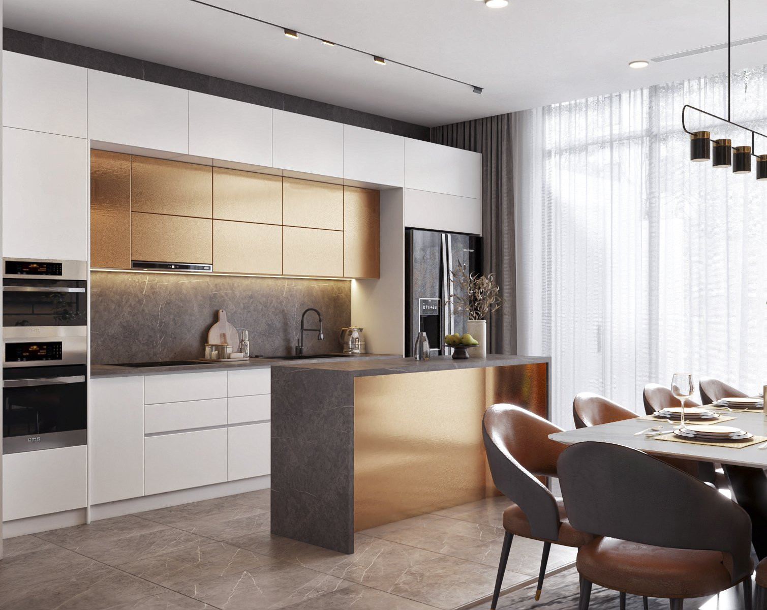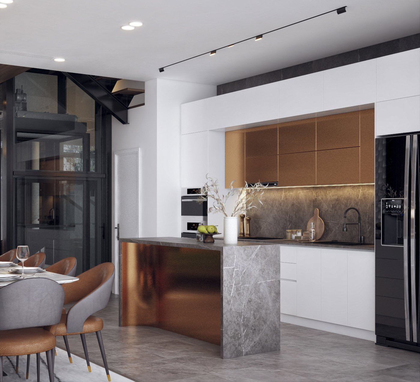 Phòng bếp kiểu châu Âu sang trọng, ấm cúng.