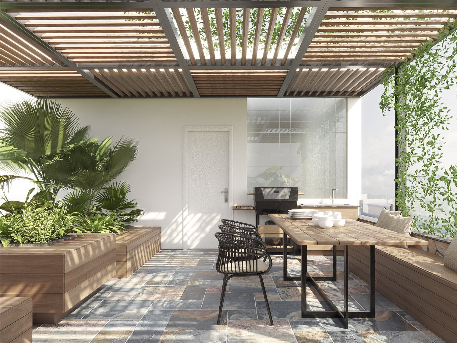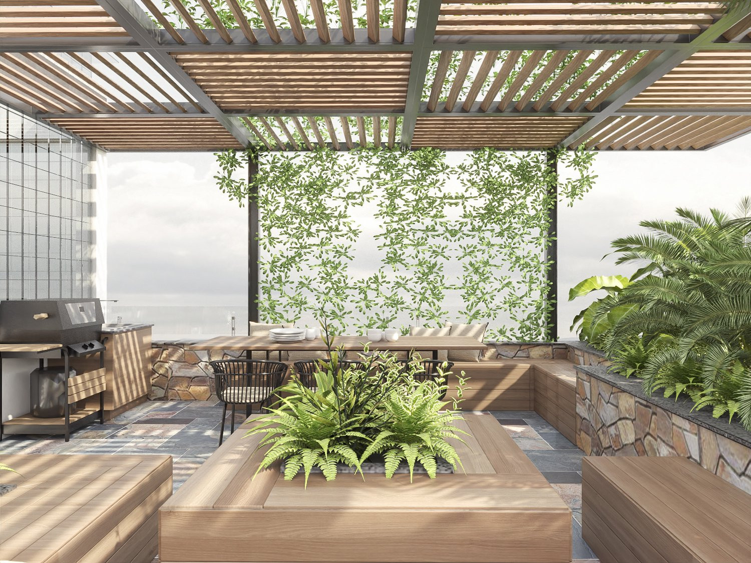 Vườn sân thượng ngắm trăng, xem pháo hoa vào mỗi dịp giao thừa, hay đơn giản là cùng gia đình tận hưởng bữa BBQ vui vẻ.