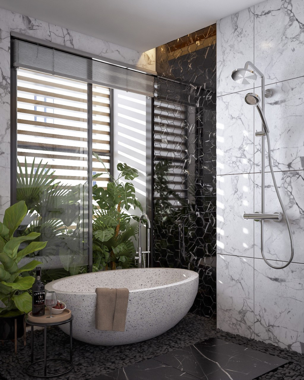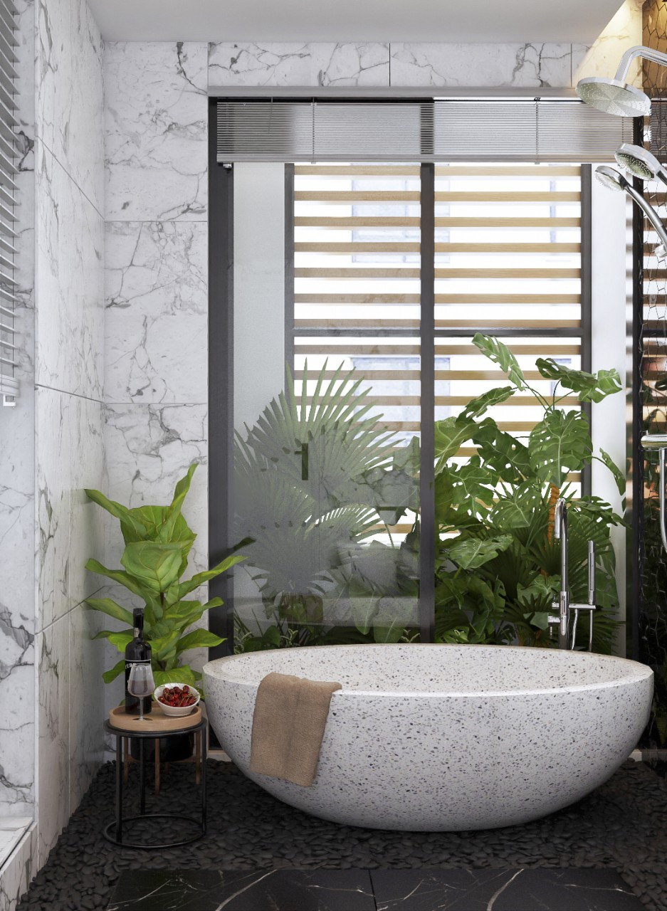 Phòng ngủ nào trong nhà cũng có phòng tắm đẹp mắt, thiết kế riêng biệt và nhiều ánh sáng.