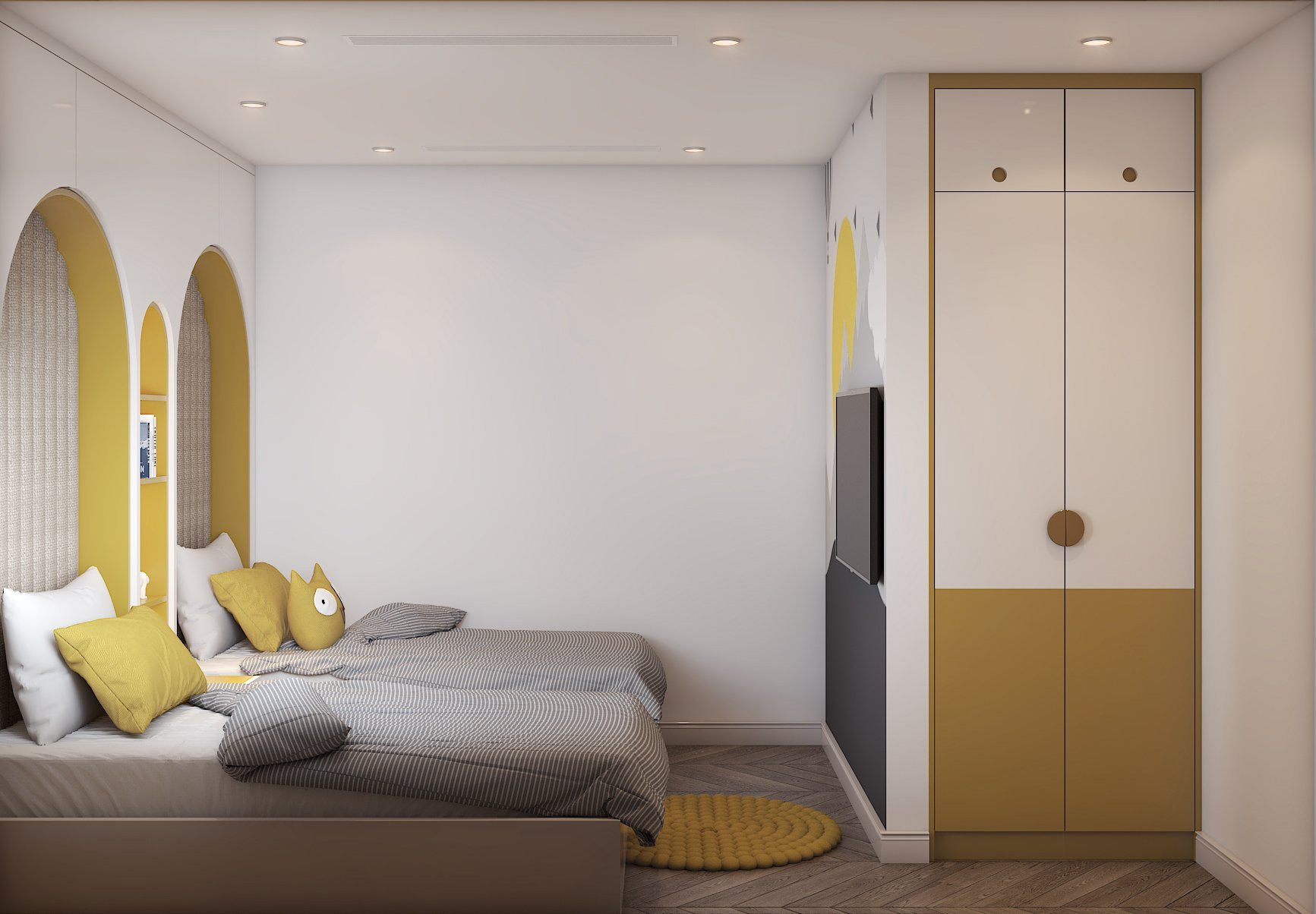 Những phòng ngủ ấn tượng, đẹp mắt cho vợ chồng gia chủ và hai con.