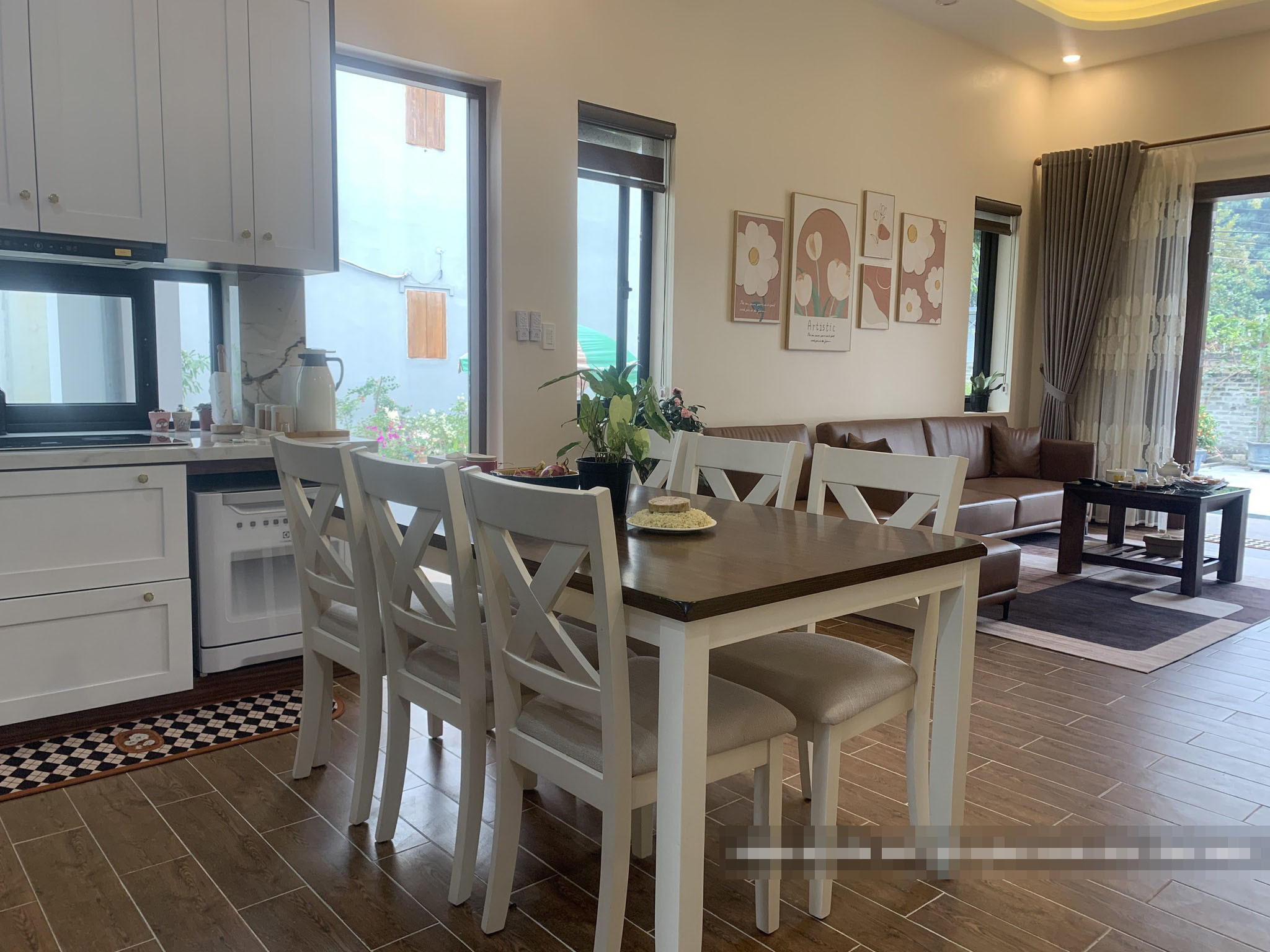 Nhà không thiết kế quá cầu kỳ, thiên về sự đơn giản và gần gũi thiên nhiên, nhiều ánh sáng. Vợ chồng anh thích những khoảng sân rộng rãi để cùng con chơi đùa, cho con những trải nghiệm ấm cúng dưới mái nhà thân yêu. Đặc biệt, với người làm trong lĩnh vực thiết kế như anh, rất cần không gian để tái tạo cảm xúc và năng lượng. Vì vậy, ngôi nhà còn có thêm góc chill, uống trà và thư giãn bên hiên.