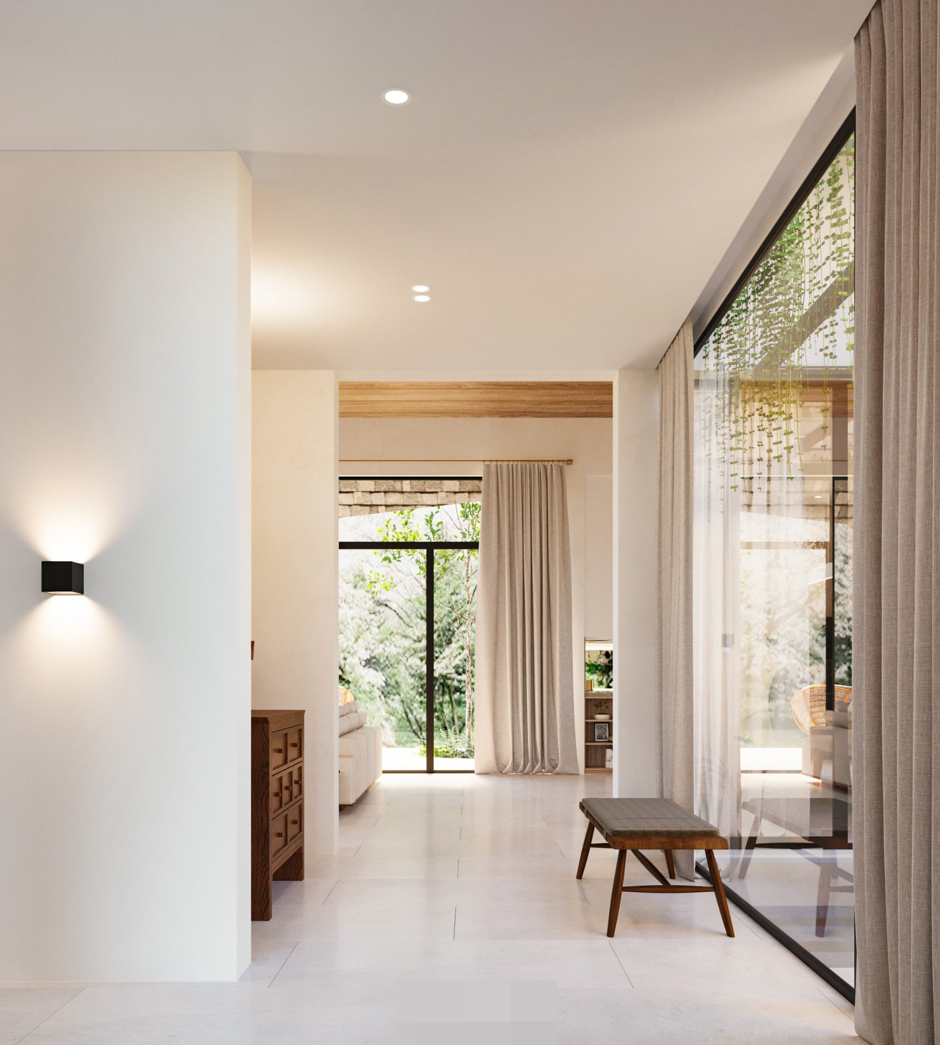 Cửa nhôm kính có tác dụng lấy ánh sáng cho nhà vào ban ngày, giảm thiểu việc sử dụng điện năng. Đồng thời tạo sự gần gũi với mảng xanh thiên nhiên.