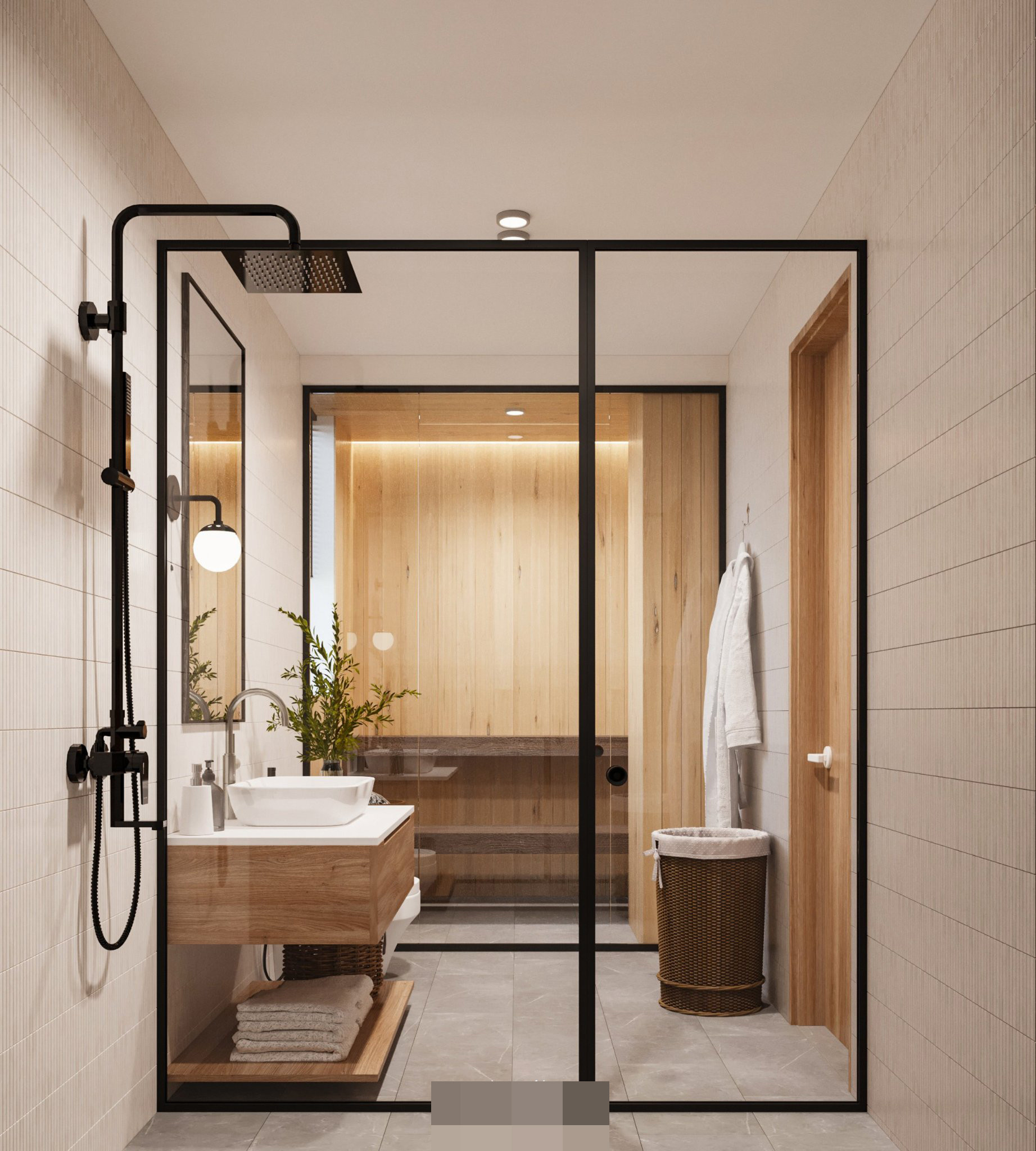 Ngoài các thiết bị cơ bản của phòng tắm, kiến trúc sư thiết kế một phòng xông hơi hiện đại, để các thành viên trong gia đình có những giờ phút thực sự nghỉ ngơi, thư giãn.