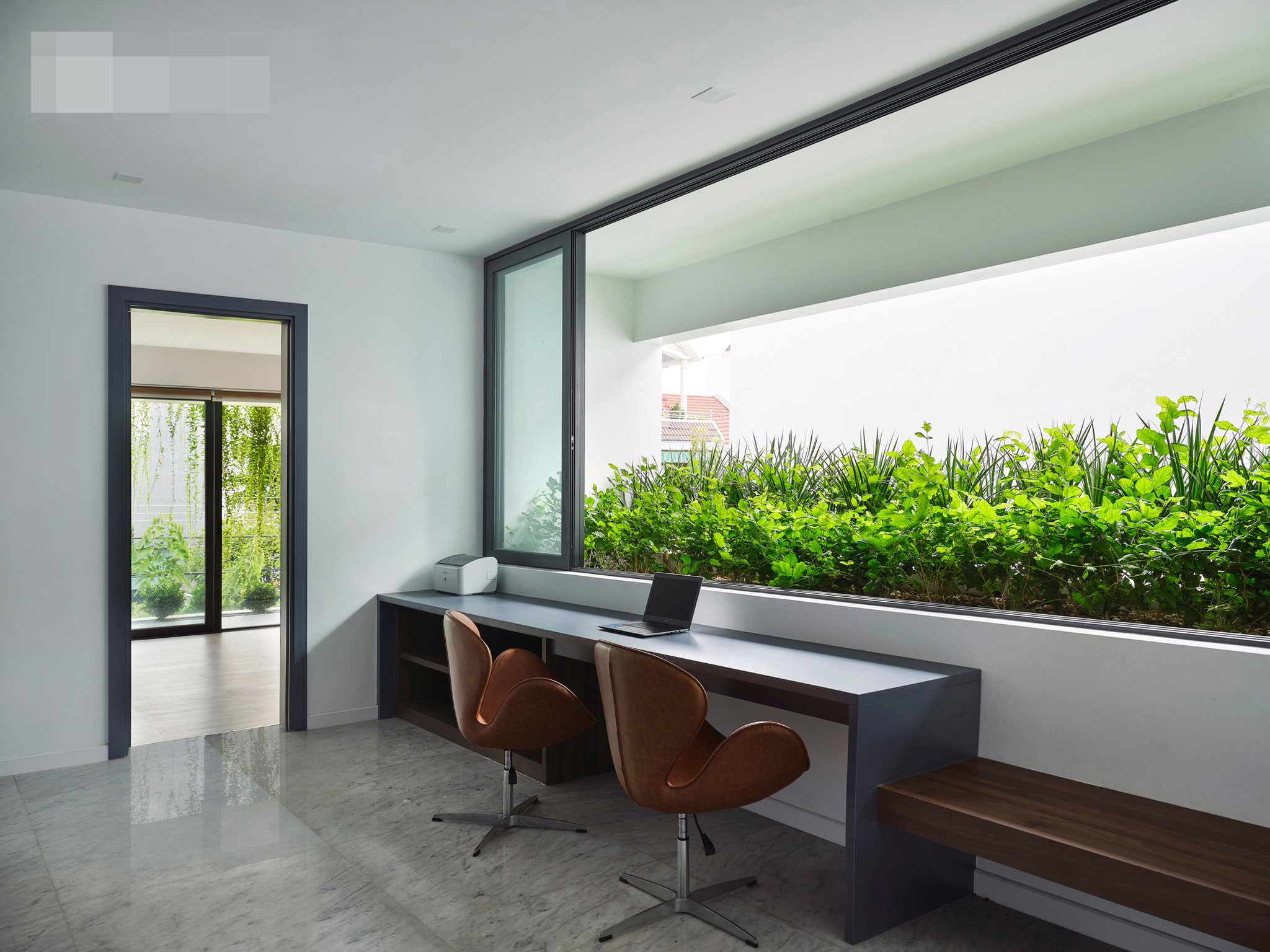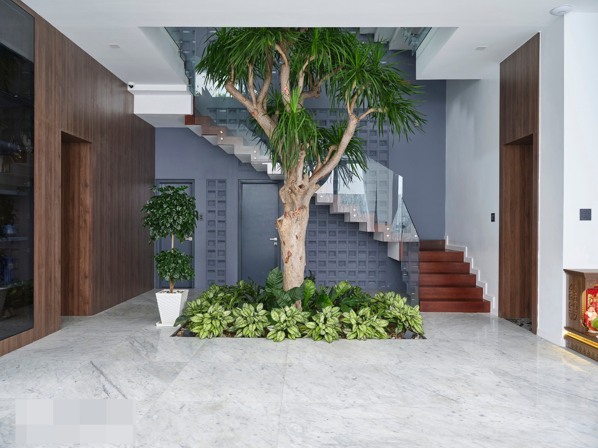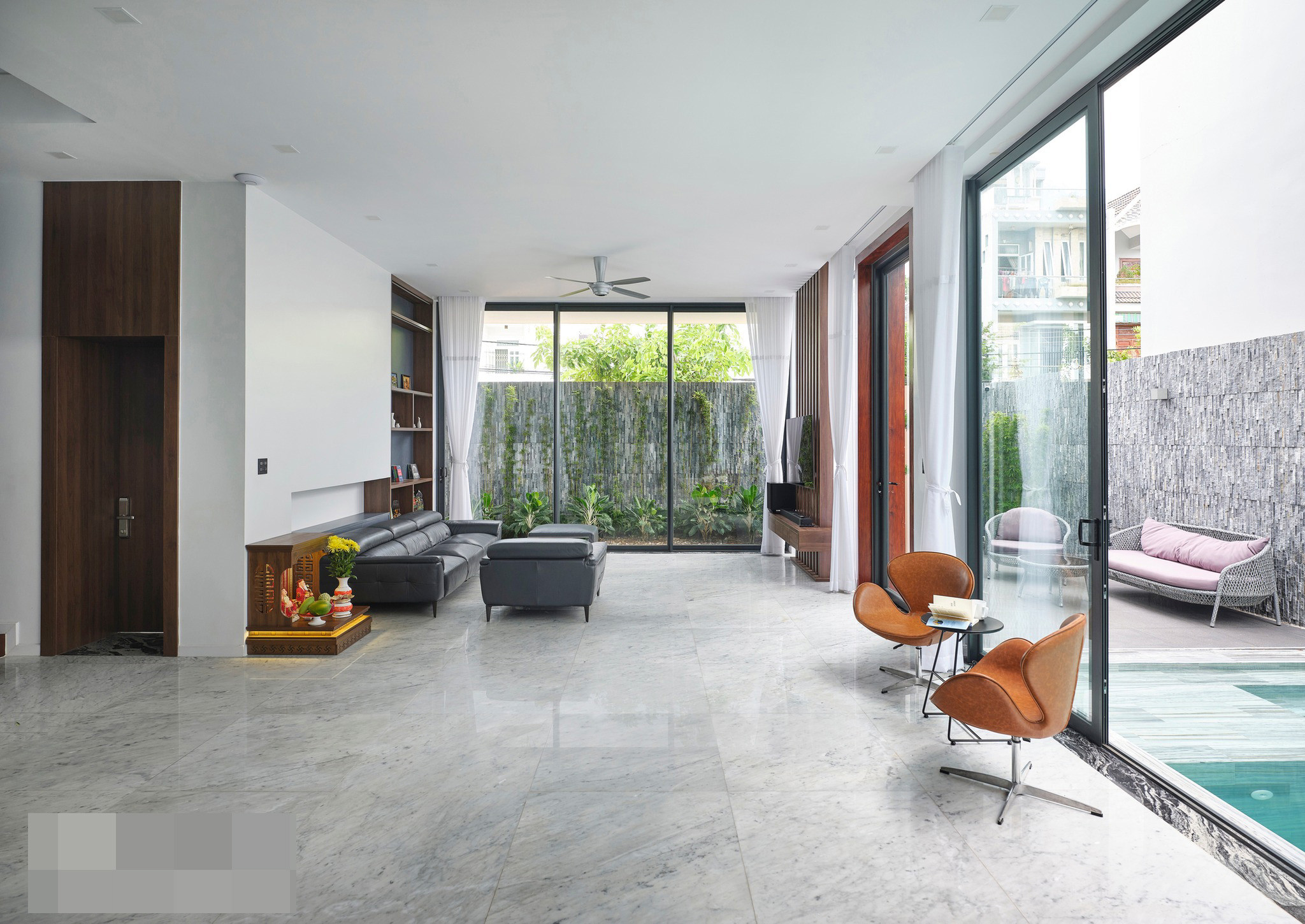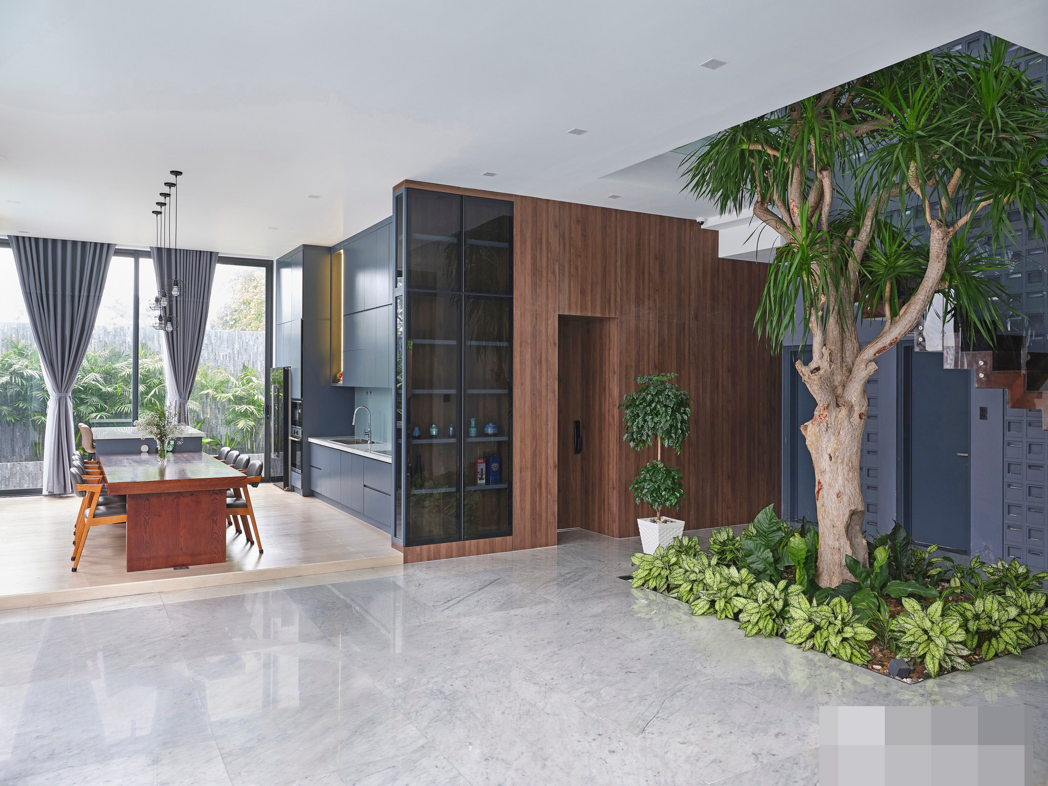 Các kiến trúc sư đã đem sự sáng tạo của mình đặt vào từng góc của ngôi nhà, tạo nên những không gian kết nối với nhau như không có đường phân giới. Bên cạnh đó, từng khu vực trong ngôi nhà đều được chắt lọc phù hợp kết hợp cùng những mảng xanh của cây cối đem lại hiệu quả về mặt thẩm mỹ và công năng, tạo nên một không gian sống đầy tính hưởng thụ.