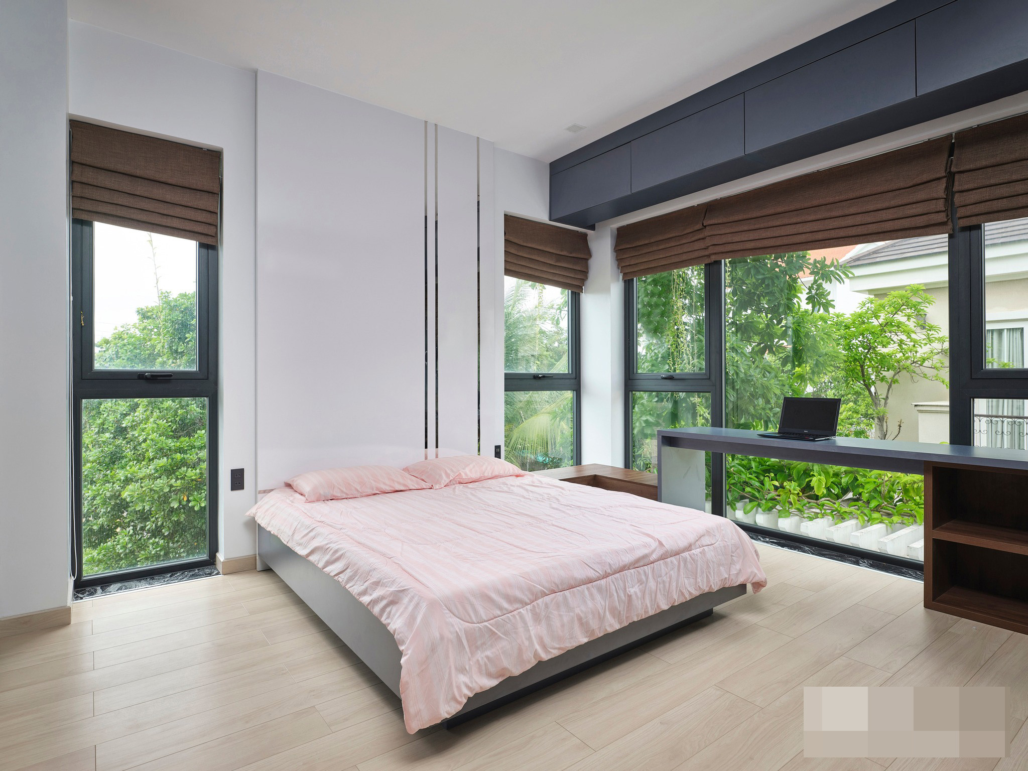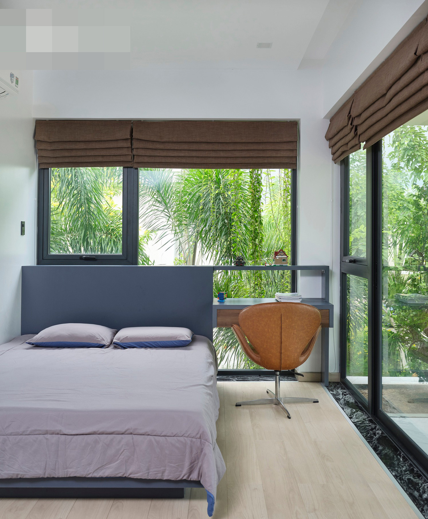 Phòng ngủ nhiều mảng xanh, đầy thơ mộng.