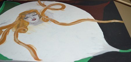 Lan Hương đang hoàn thành bức vẽ này