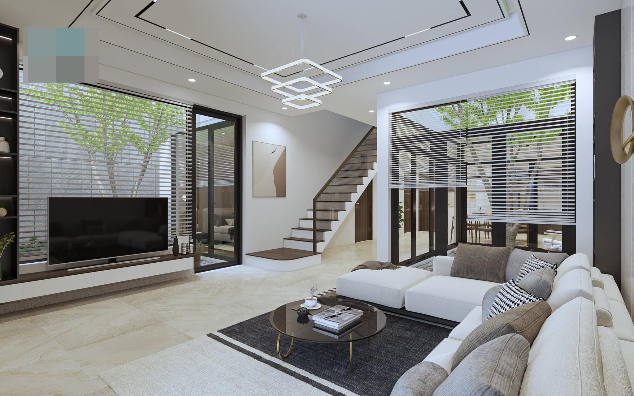 Phòng khách là vị trí trung tâm, nơi diễn ra nhiều hoạt động của cả nhà vì thế anh Hiển tạo ra sự kết nối giữa các khu vườn thông qua nơi đây. Mỗi khi cả nhà quây quần, trẻ em có thể tha hồ nghịch ngợm, chạy nhảy mà người lớn vẫn bao quát được.