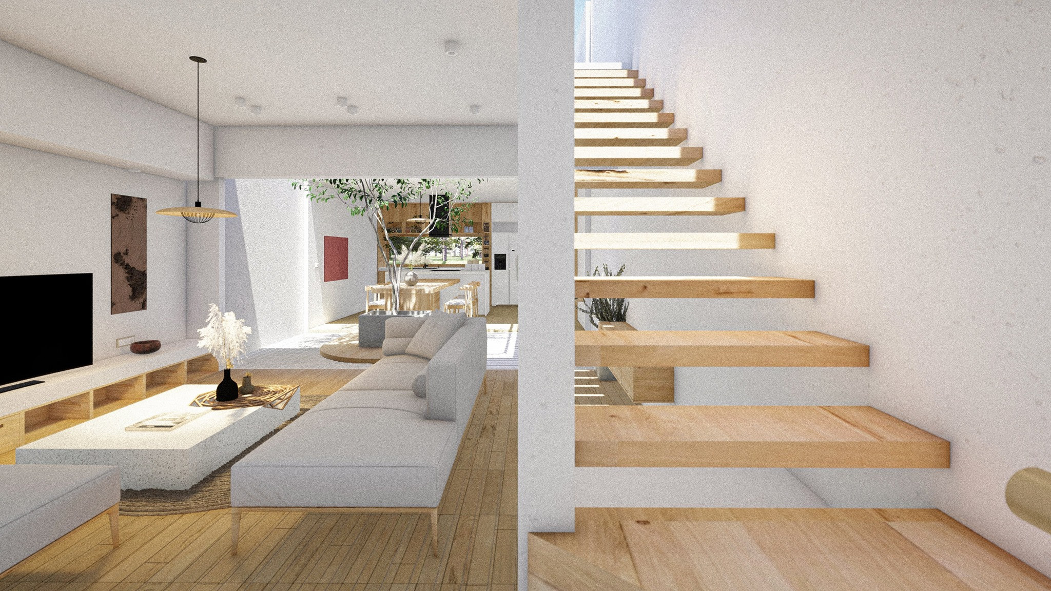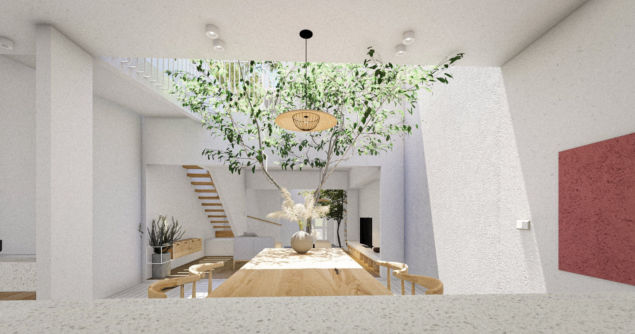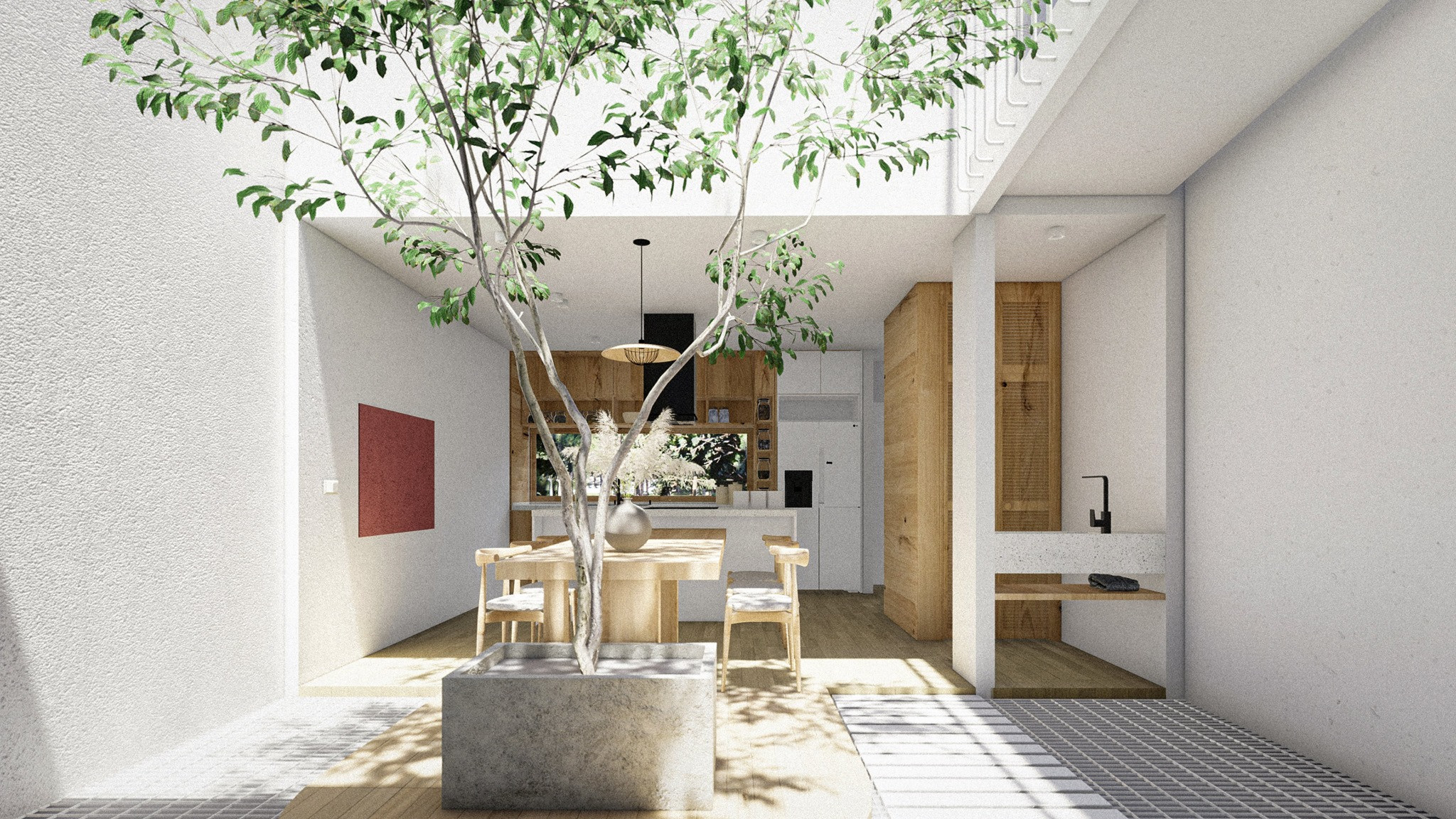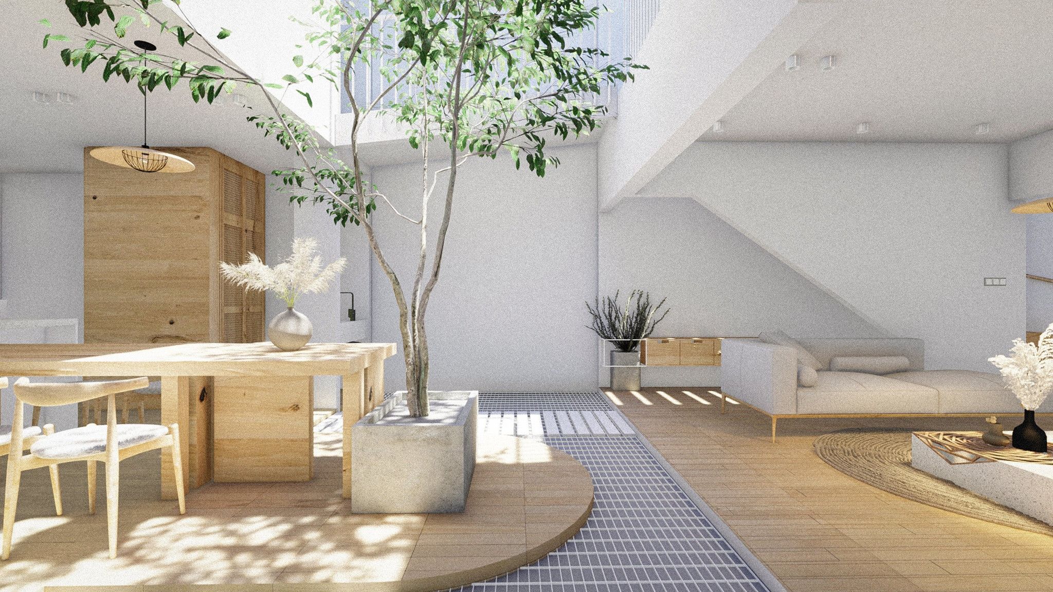 Kiến trúc theo một định nghĩa mới không chỉ là công trình đáp ứng nhu cầu về công năng, thẩm mỹ mà còn là phương tiện để kết nối con người với con người, con người với thiên nhiên. Ngôi nhà được nhóm thiết kế với ý tưởng không gian mở. Phòng khách, phòng ăn, khoảng chờ là những khoảng mở liên tục. Từ một gian phòng, bạn có thể phóng tầm mắt đến các phòng khác xuyên qua những khoảng vườn xanh mướt, trò chuyện cùng nhau.