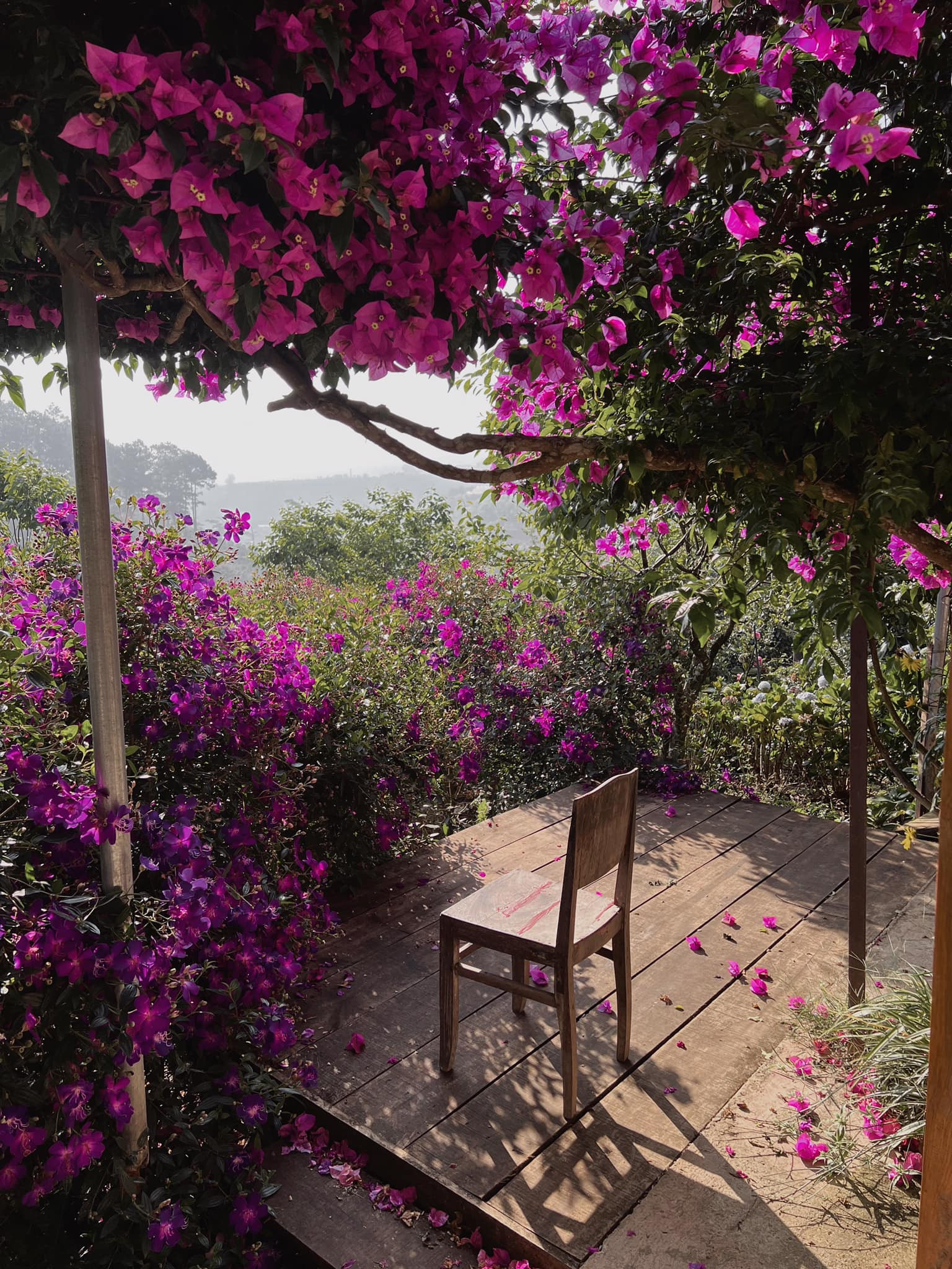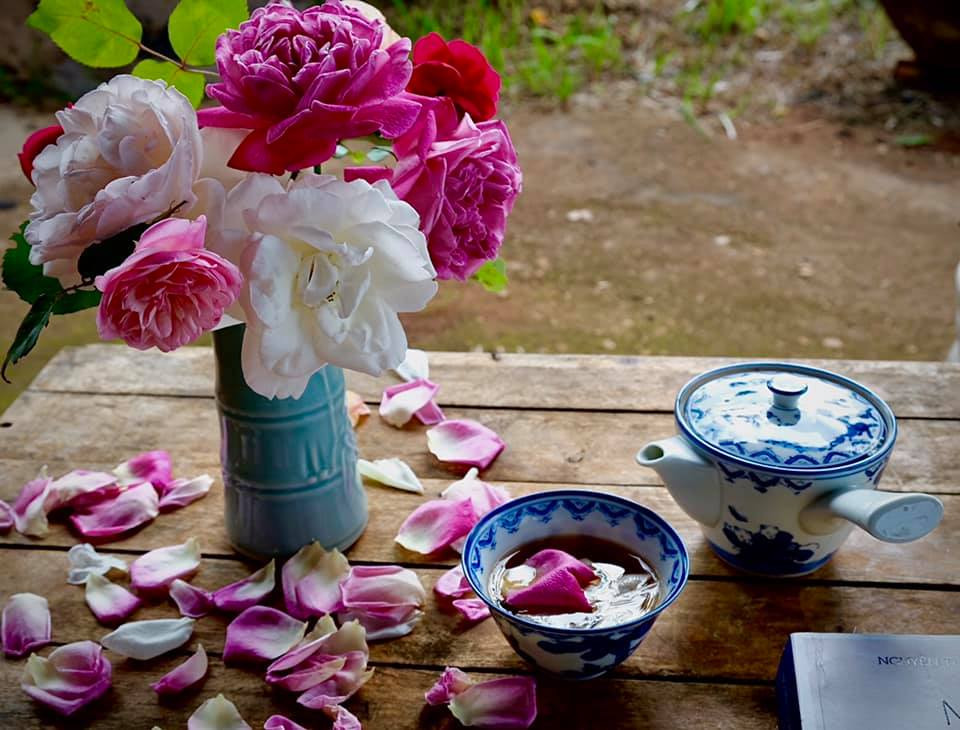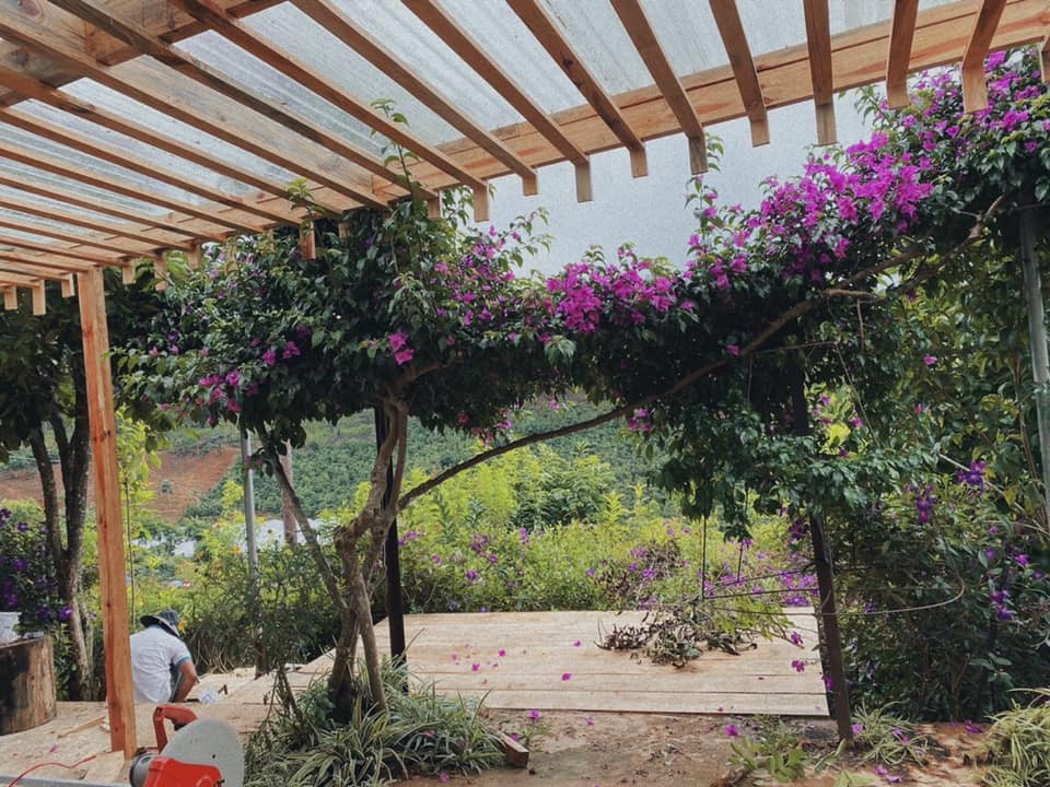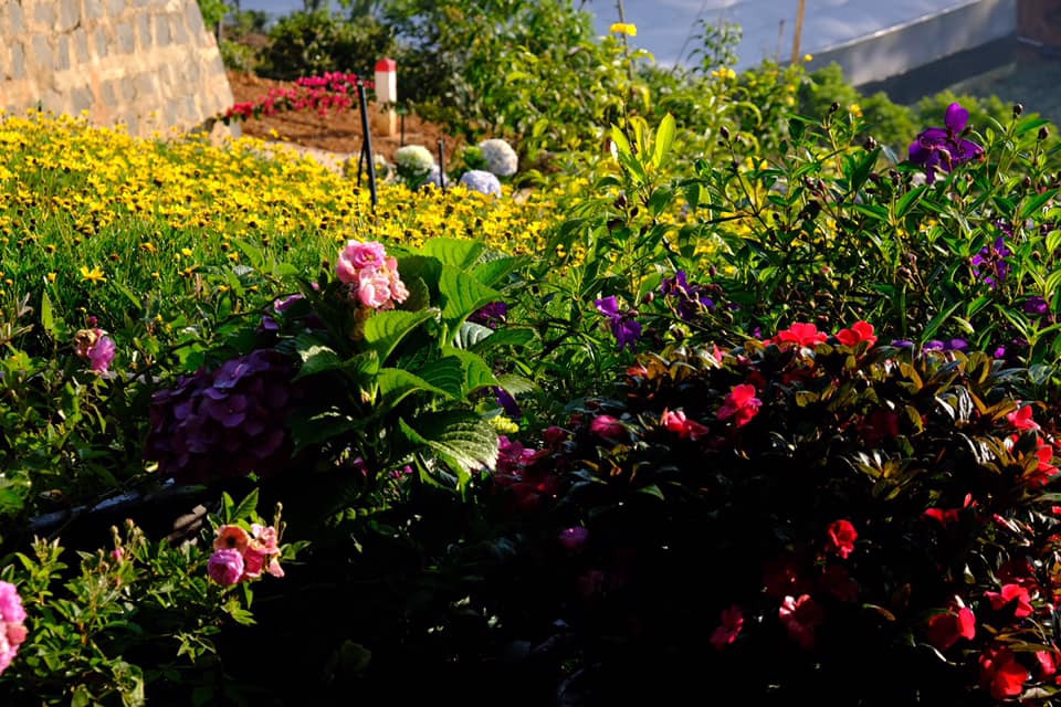 Cảnh sắc tươi đẹp, hoa rực rỡ ở khu vườn nhà chị Mộc Nhiên. Tất cả được chị dày công vun trồng, chăm sóc theo phương pháp hữu cơ, làm nông nghiệp sạch.
