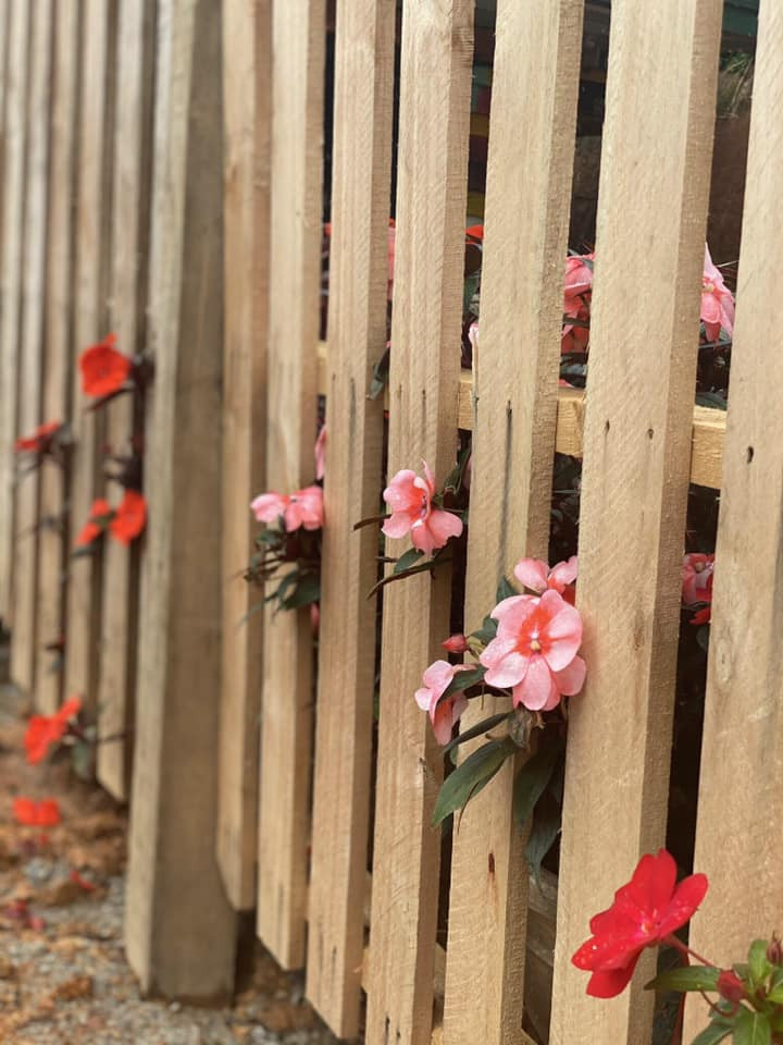 Hàng rào gỗ, bậc thang và nhiều thứ trong khuôn viên nhà được chủ nhân tự làm.