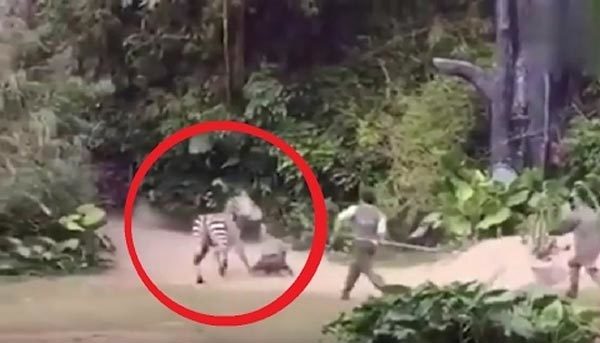 Trong cơn điên loạn, con ngựa vằn quật ngã một nhân viên sở thú và dùng miệng ngậm chặt một cánh tay của người này, lôi đi xềnh xệch trước sự kinh hãi của những người chứng kiến. Các đồng nghiệp của người nhân viên không may đã vội vàng bám theo tìm cách giải cứu anh.
