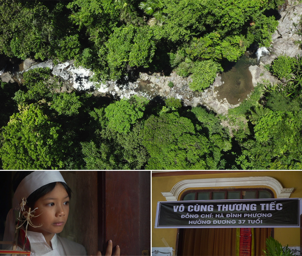 Thuyền qua thác Tam Lu một đoạn thì đến thôn Tân Sơn. Trường nói: "Những người dân nơi đây, cuộc sống còn gian khổ lắm chị ạ, nhất là về mùa mưa lũ. Bà con làm được mấy thóc lúa dự trữ là lụt trôi hết, dân cần cù mà làng cứ nghèo mãi. Tội nhất là người già với con nít. Chưa có cầu nên buổi sáng cha mẹ phải dậy từ 4 rưỡi, đội đèn cõng con lội từ bên ni (này) qua bên tê (kia) sông để đi học, trưa lại bơi qua sông cõng con về. Thuyền không sắm nổi nên cứ phải khổ rứa đó chị. Dậy sớm nên bọn trẻ ngủ gật trên lưng cha mẹ đến trường. Chừ (giờ) mong răng (sao) có cây cầu cho bà con đỡ khổ".