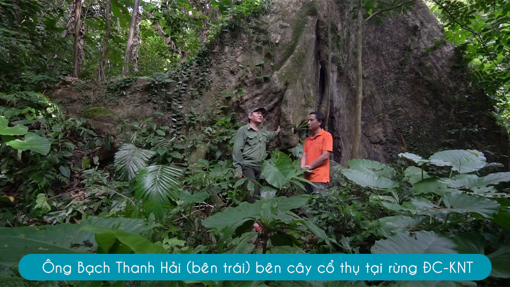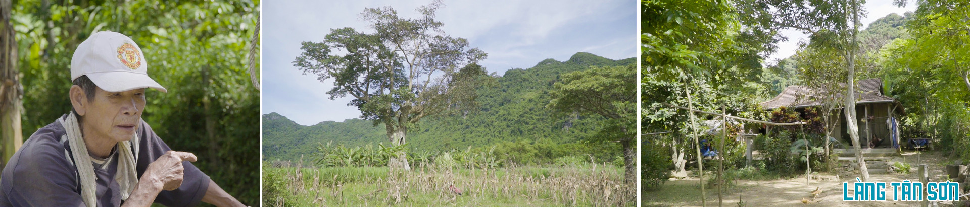 Tôi bảo Trường neo thuyền cho chúng tôi lên thăm làng. Tân Sơn đẹp như trong cổ tích với nhiều cây cổ thụ xòe tán rộng trên những triền dốc. Làng nhỏ bé giữa thung lũng với sông núi bao quanh, có cả nhà sàn của đồng bào Bru-Vân Kiều và nhà cấp 4 của bà con người Kinh từ dưới xuôi lên định cư. Người đầu tiên chúng tôi gặp ở làng là cụ Võ Văn Khuynh, 91 tuổi. Quê cụ Khuynh ở Tân Ninh (huyện Quảng Ninh). Cụ lên đây lập nghiệp từ năm 1964. Hết chiến tranh đến bão lũ triền miên, cuộc sống gian khó nhưng đã gắn bó với nơi này nên cụ không muốn rời đi. Ngôi nhà con trai cụ mới sửa sang lại tạm bợ với những mảnh gỗ cũ được ghép đơn sơ, nắng đan xiên trên nền đất. Trên cánh cửa còn những vạch đánh dấu mức ngập lũ, có vạch gần đến nóc, ghi năm 1992. Cụ kể năm đó, thóc lúa, nhà cửa của làng Tân Sơn bị cuốn trôi hết, may nhờ bộ đội Biên phòng cưu mang, cho cái ăn cái mặc, giúp dựng lại nhà cửa. Cụ nói: "Rừng bị phá rứa tê (như thế) lấy chi mà không lũ lớn. Có trận lũ cuốn về hàng trăm súc gỗ". Rồi cụ chỉ những súc gỗ mục chất quanh nhà: "Đó o coi, gỗ ni (này) từ trên rừng theo nước lũ trôi về, dân Tân Sơn đến mùa lũ là ra sông lượm vô để làm củi, làm than, sưởi ấm mùa đông".
