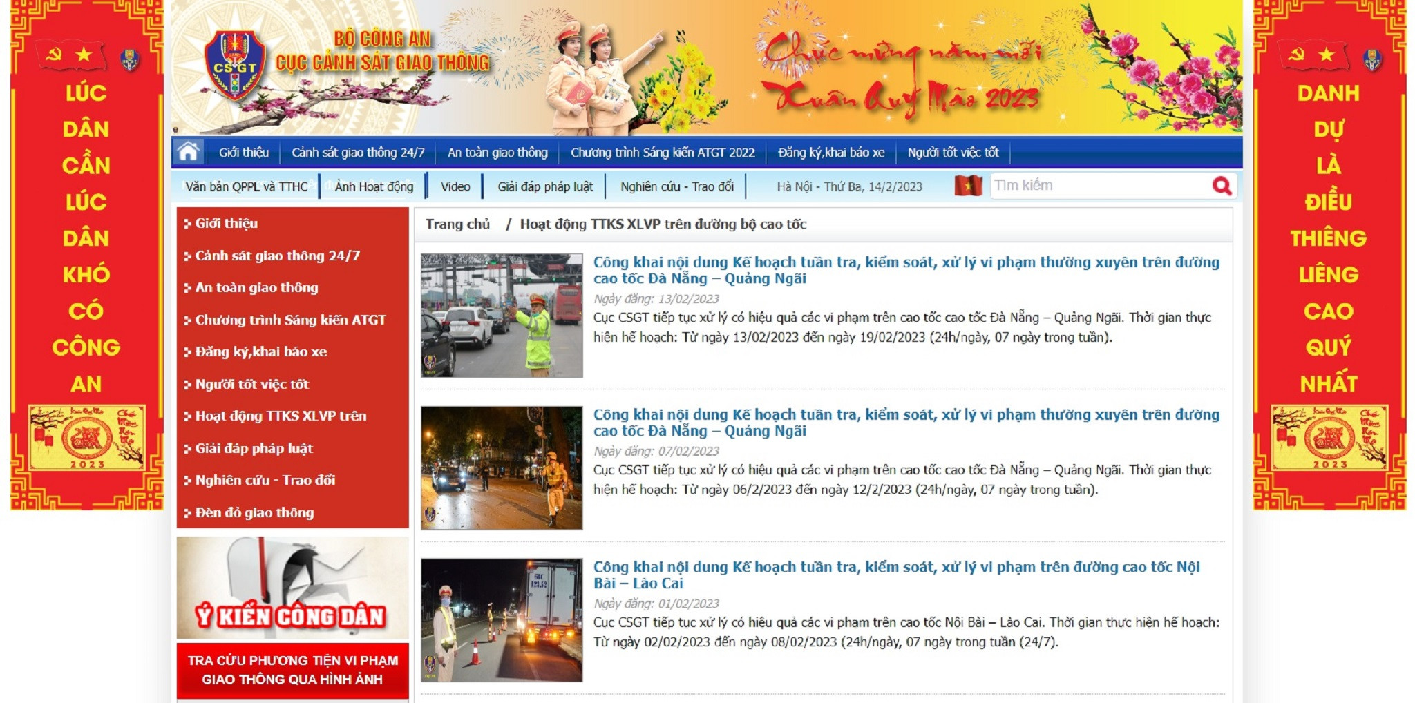 Đơn cử, mọi hoạt động tuần tra kiểm soát, xử lý vi phạm trên các tuyến đường bộ cao tốc được Cục CSGT (Bộ Công an) đăng tải công khai trên Cổng thông tin điện tử Cục Cảnh sát giao thông.