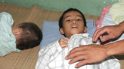 | Lúc khỏe Tuấn có đôi mắt to, tròn và vầng trán thông minh. Thế nhưng lúc bệnh đến da em xanh tái, mắt mờ kèm sốt cao, co giật. |